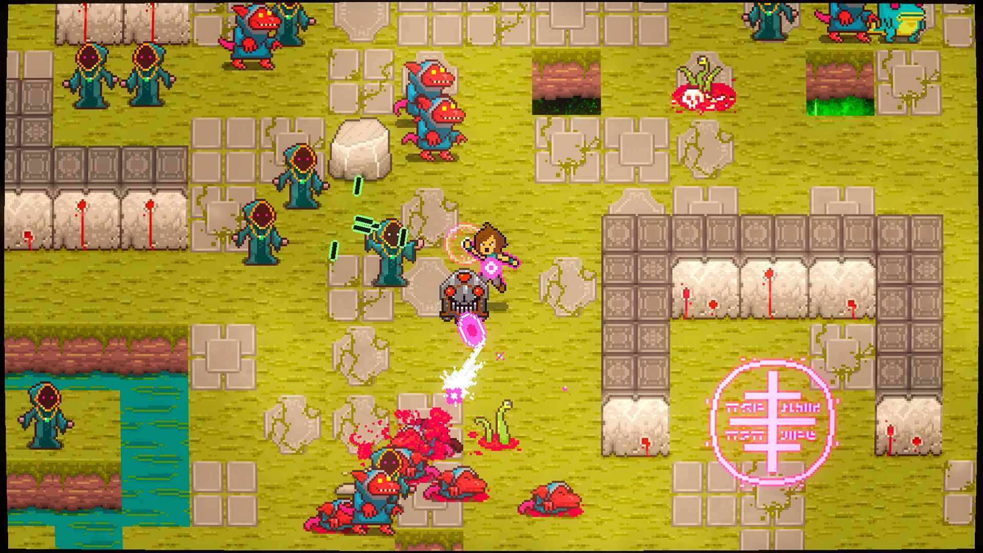 Deathstate is a roguelike, bullet hell, single stick shooter set in a bizarre world of dimensional exploration for pc and mac. You play as a number of unique characters trying to discover the fate of Professor Elinberg who opened a portal to the void. Great and terrible mysteries and even greater treasures await if you are bold or foolhardy enough to go beyond the beyond.