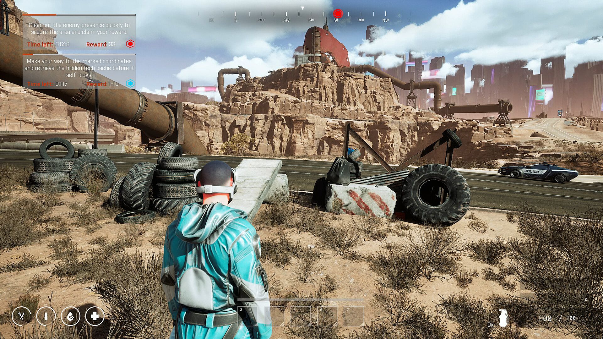 • Explore a vast cyberpunk city surrounded by an apocalyptic wasteland