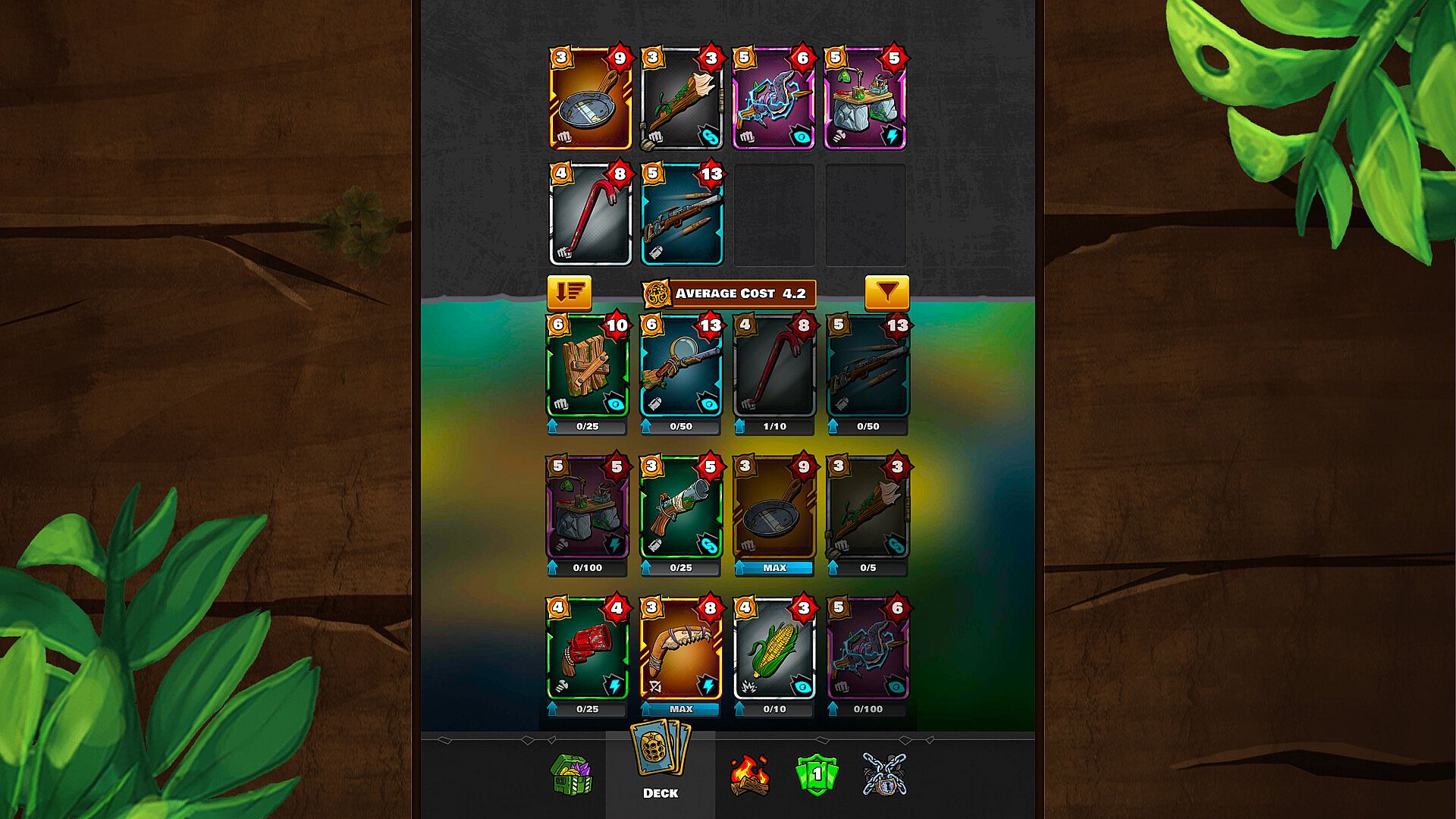 Steam version of Deck Dash is a PC port of the original mobile game. It is free from the mobile F2P monetization scheme. In this version, you can buy gems only for customization elements, not to progress faster.