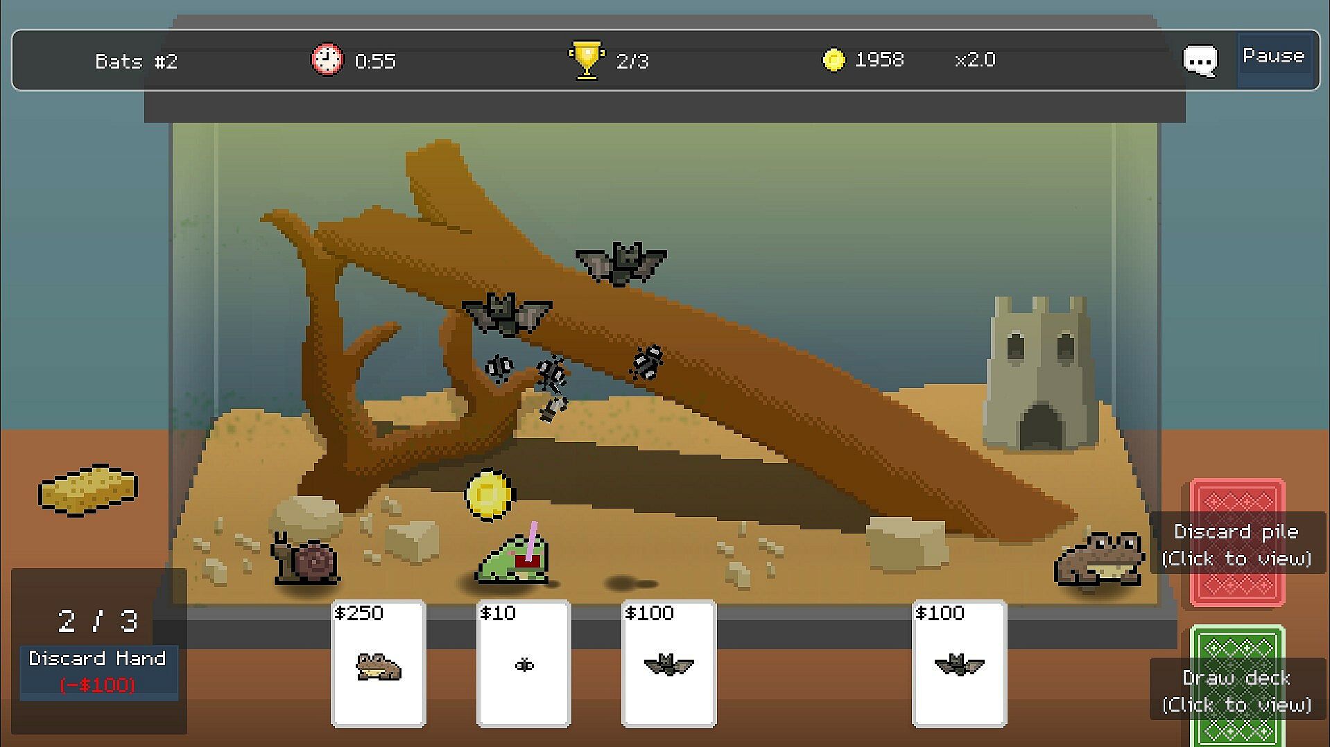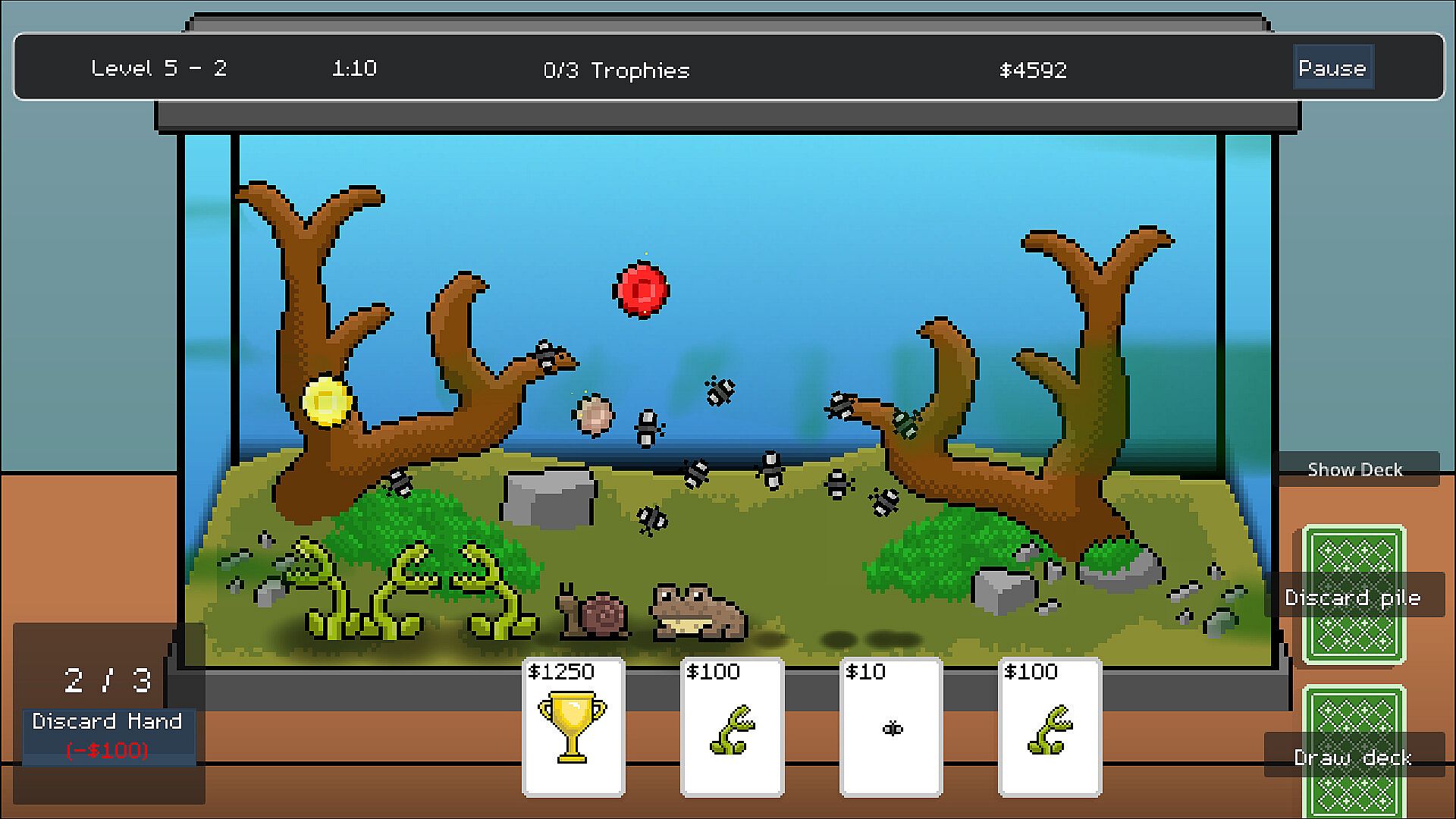 Beat levels and minigames to earn extra currency for your own personal idle terrarium and aquarium, where you can collect and name your own unique pets without fear of phantoms!