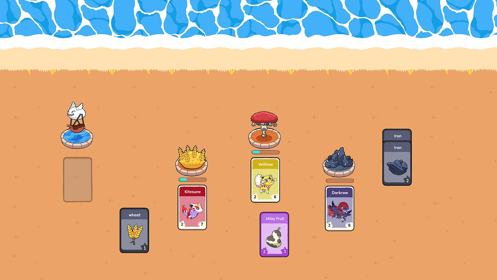 Explore unique islands with diverse biomes, resources, and unique Decklings to collect