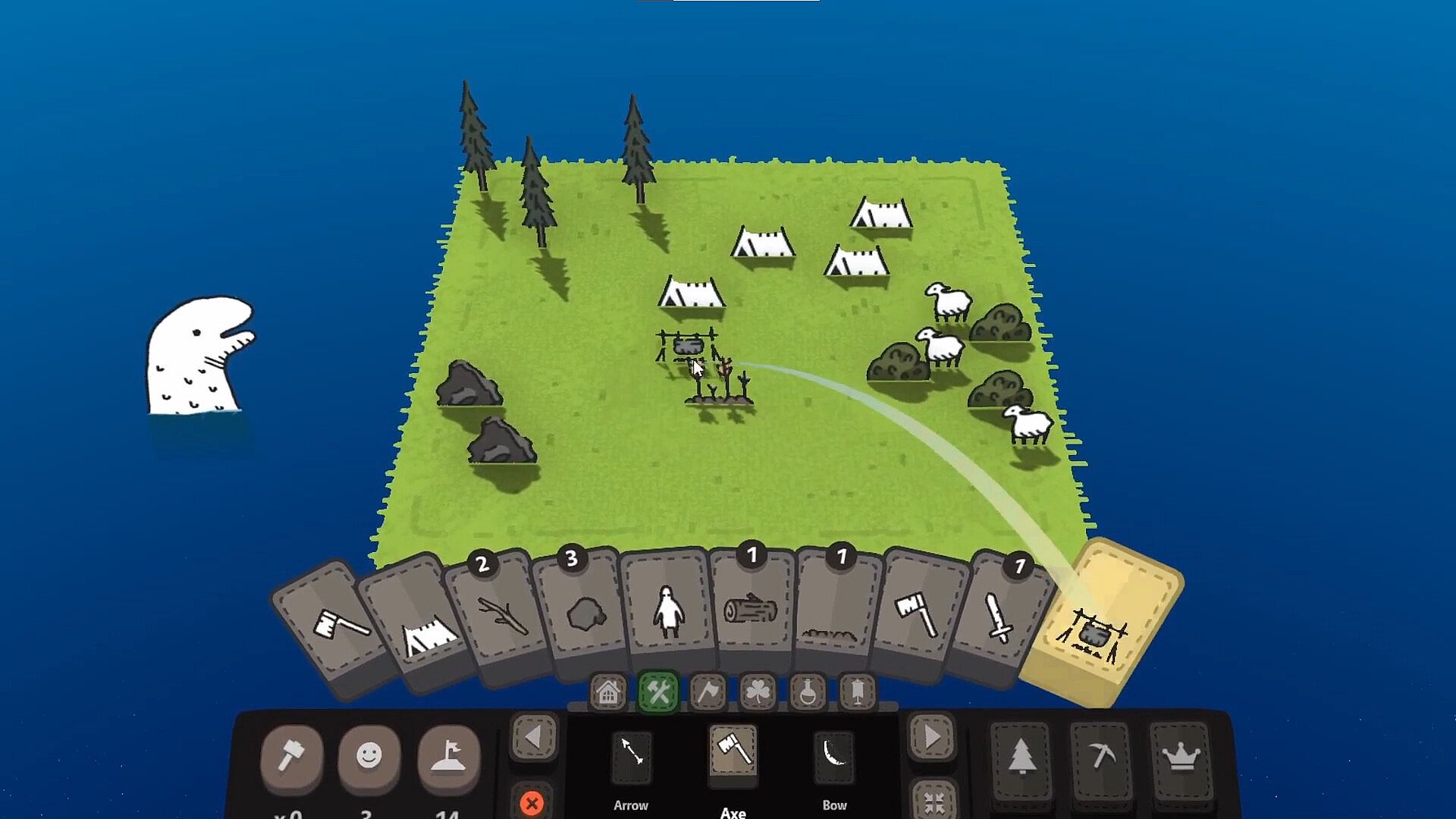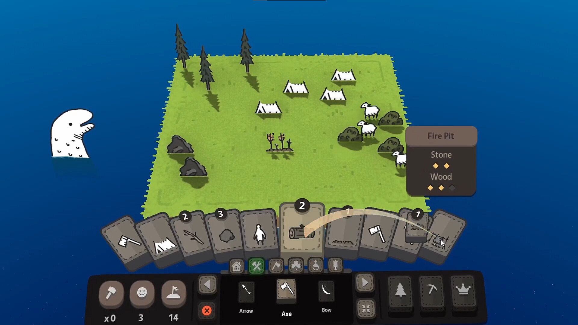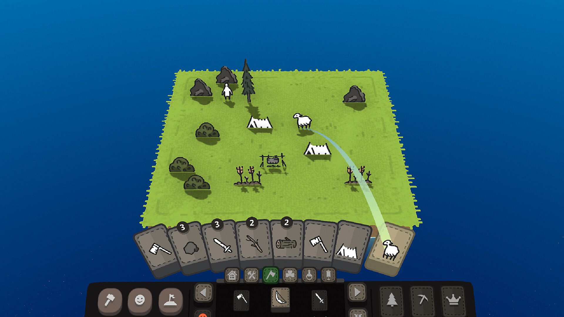Survive on an unknown island by drawing cards to build shelters, craft items, and fend off threats in this deck-building survival simulation. Start with a stranded survivor and expand into functional buildings for sustenance while combining cards to create materials, weapons, tools, and more. Hunt animals with crafted gear, gather food, farm crops, or grow vegetation for aesthetics and resources. Tame wild creatures as pets, farm animals, or defenders, but watch for pirates who capture survivors for the black market. A story generator triggers random events shaped by each character's personality and traits, driving unique decisions. Players who enjoy open-ended strategy-sustaining lifestyles, keeping survivors and creatures happy, slaying the strongest sea beast, or crafting a boat to escape-thrive here.