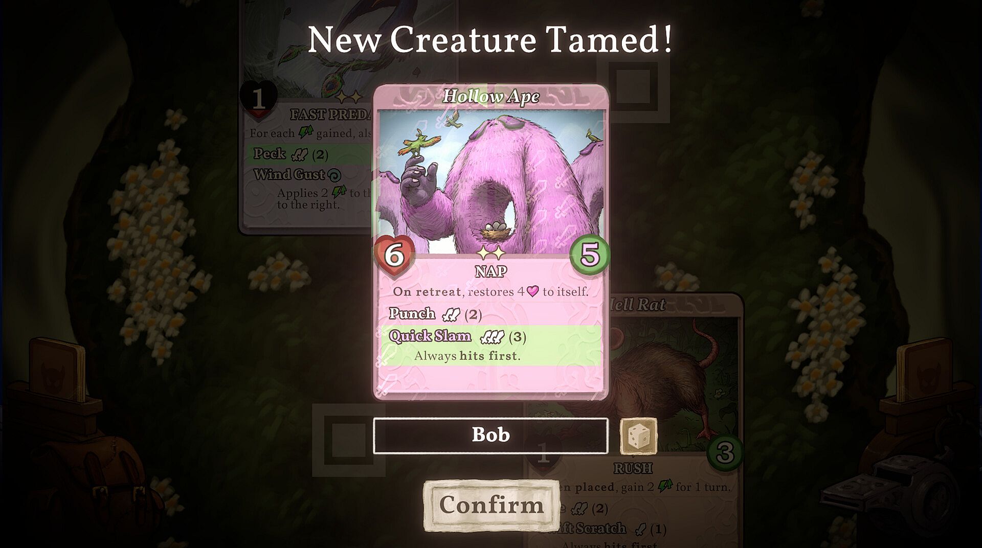 In this game, cards are not simply handed out to you, you have to tame your enemies to add them to your deck!