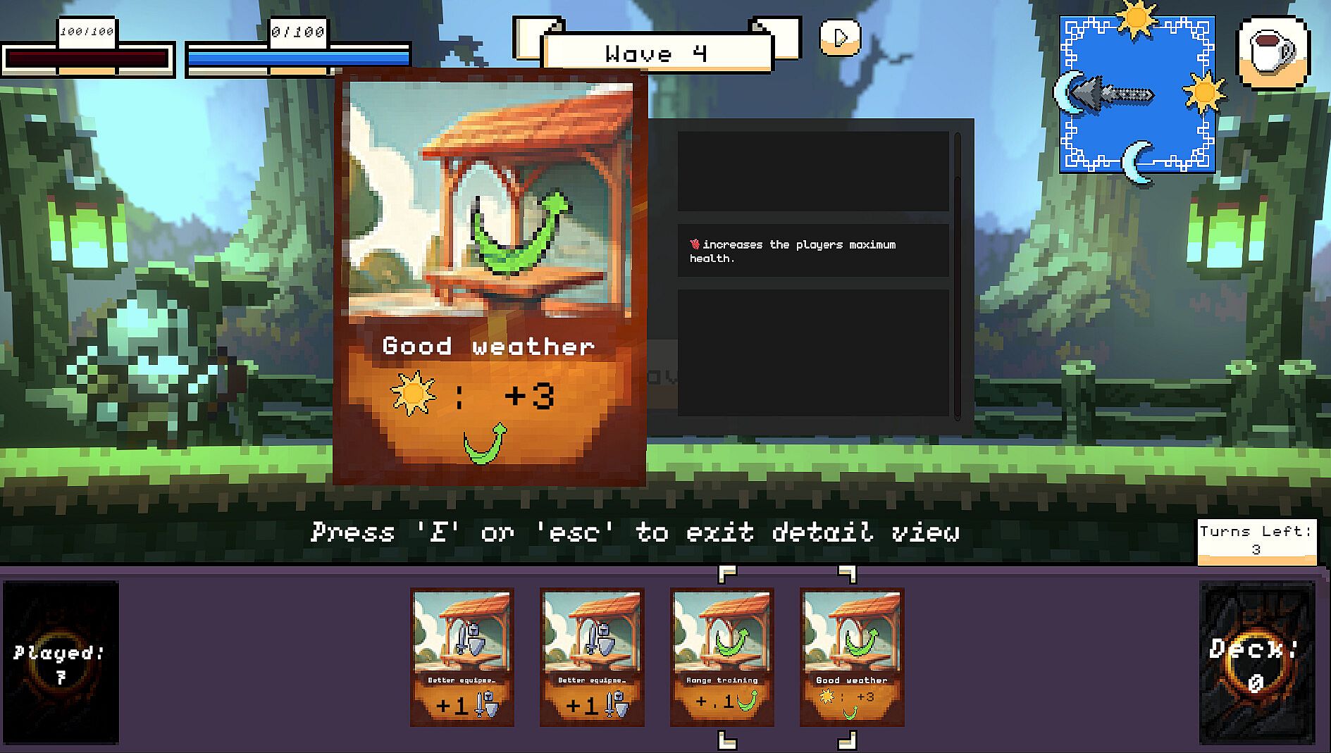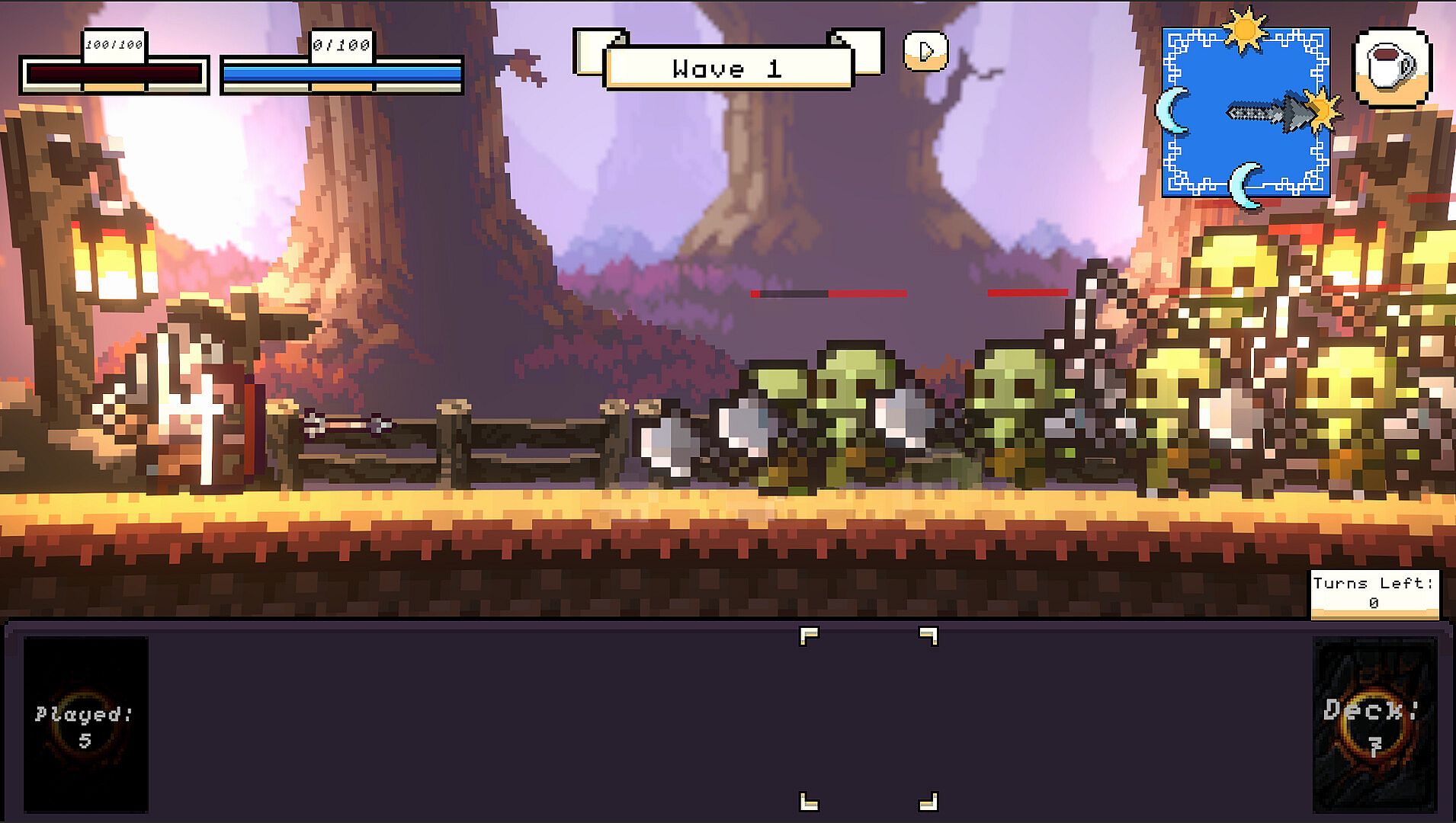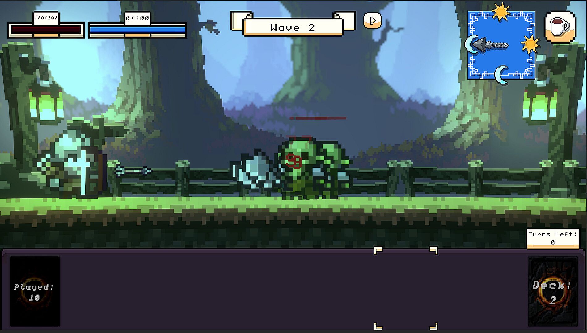Every turn means a tick on the clock, the world has different effects based on the time, cards may have different effects, players and enemies new buffs or debuffs. Always keep an eye on the clock.