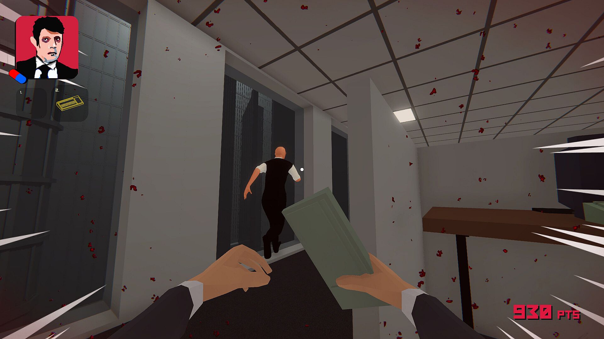 You can use a gun like a normal person, but who needs a gun when faced with keyboards, mouses and... CHAIRS!