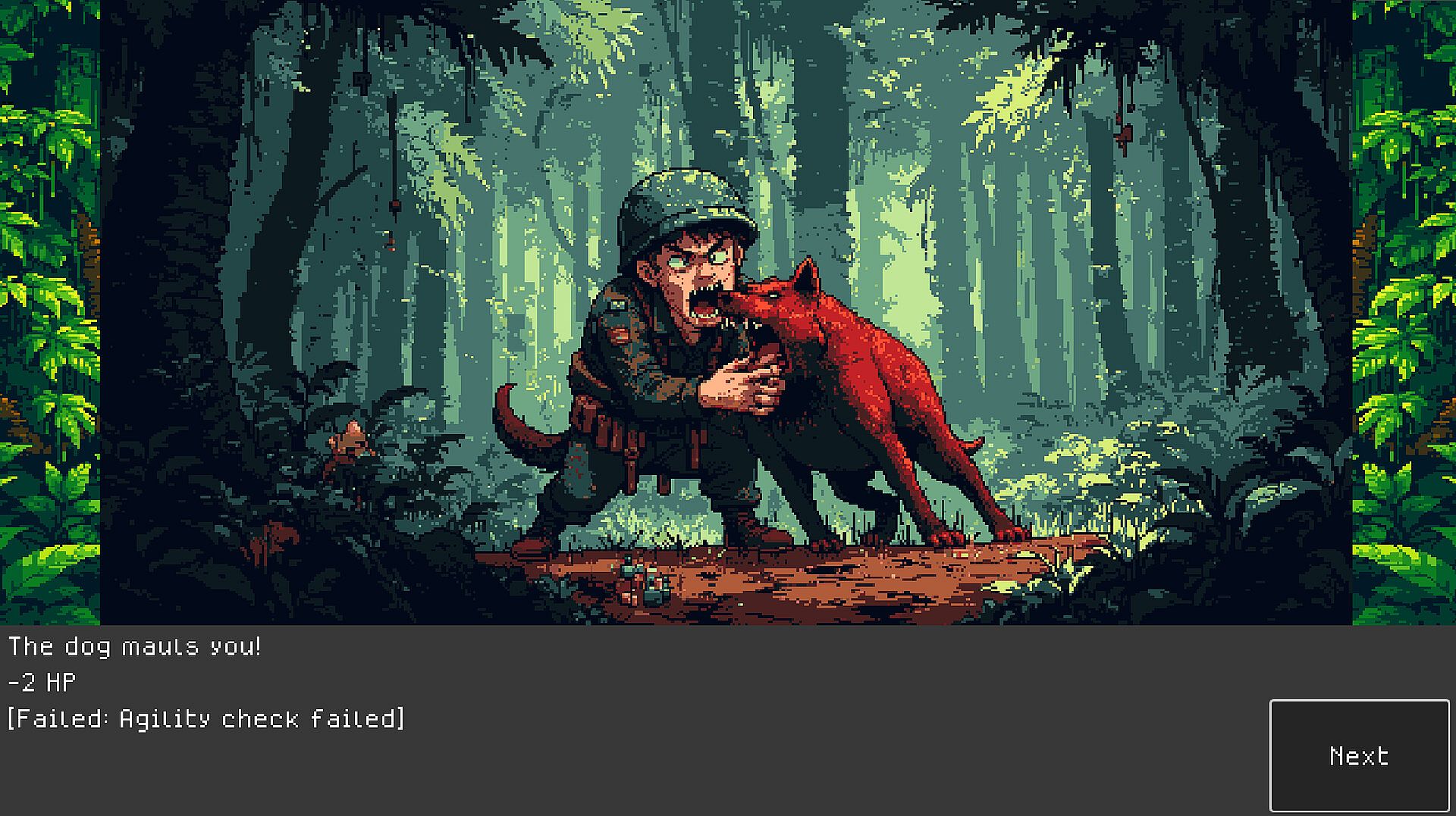 Deep in Enemy Territory is my attempt at making a roguelike game about a single soldier. I have added new mechanics and more advanced, randomized scenarios with classic TTRPG choices and dice rolls.