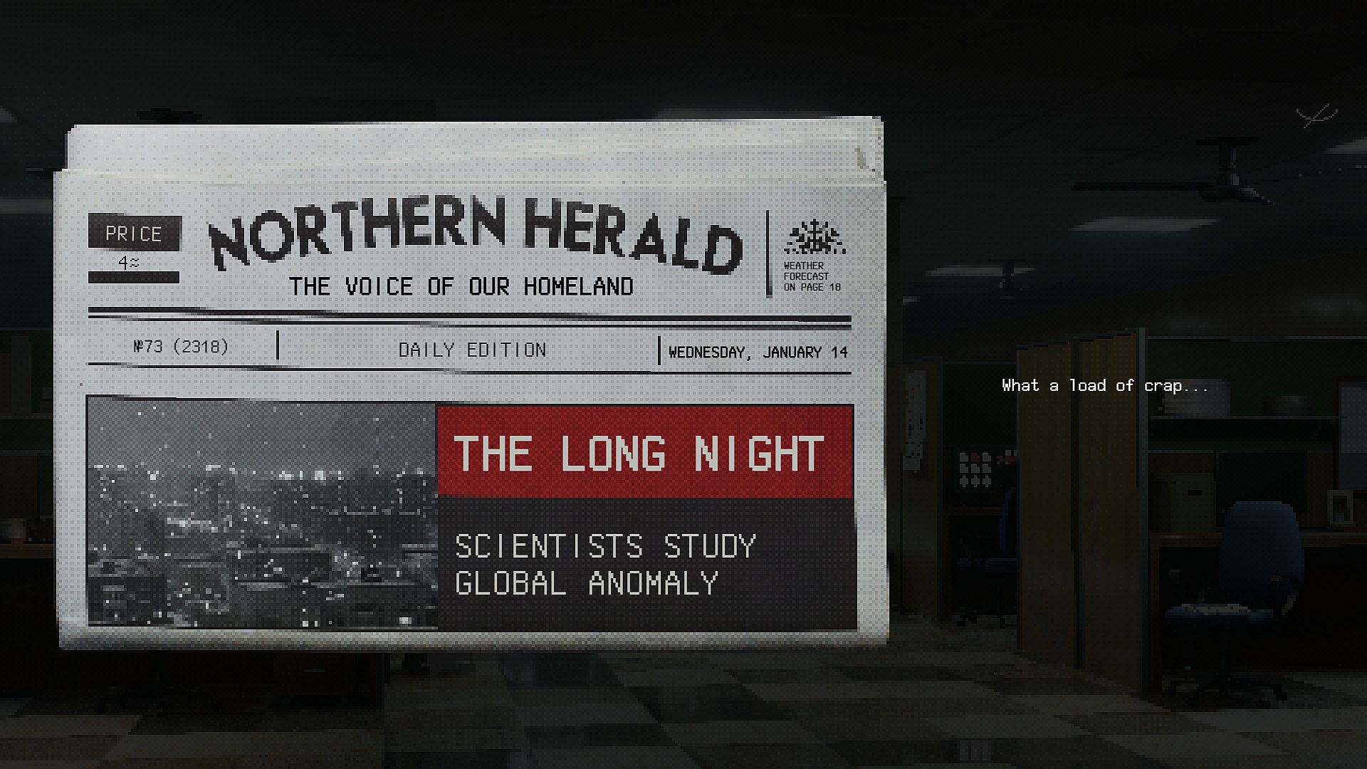 Sink into the slow, heavy vibe of a wintry city, where the snow falls with quiet indifference and the polar night has no end.