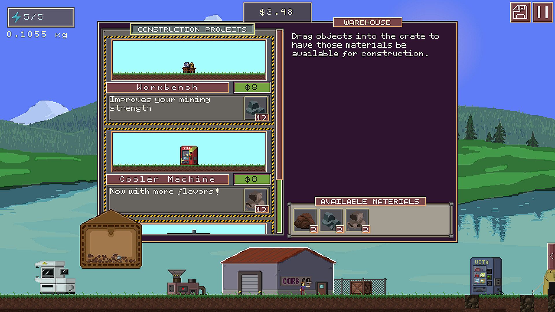 As you progress, you unlock new construction projects at the warehouse. Put your resources into building new buildings, and you will unlock new ways to play the game. This is how you put dirtville on the map.