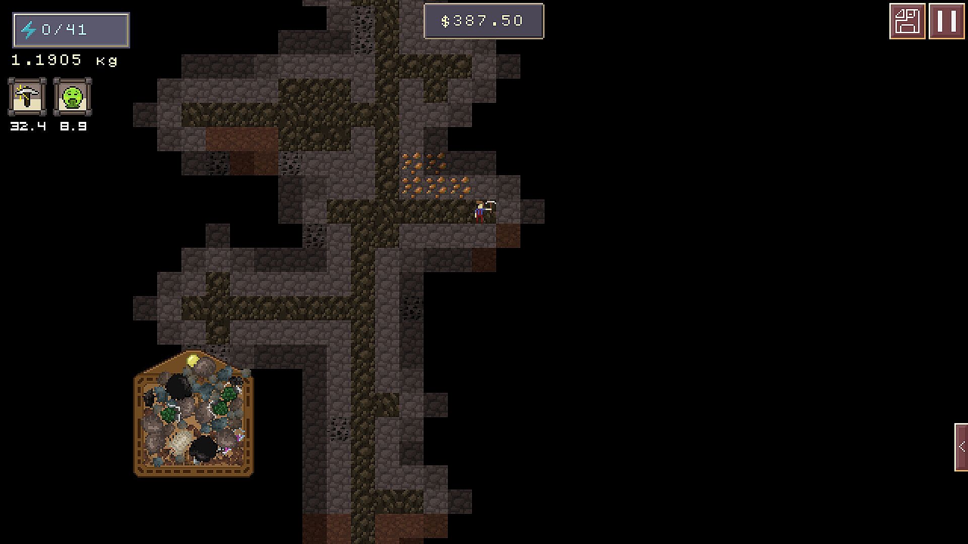 Welcome to the backwater town of Dirtville. There is little else here but a small and thriving mining industry, and you've come here to earn your keep! With nothing but a pair of worn-out overalls to your name, you will have to ferry your stones and precious minerals with nothing but your tattered pockets to make your profit. This is the start of your rags to riches story. Load up, keep your footing, and show Dirtville what having deep pockets really means.