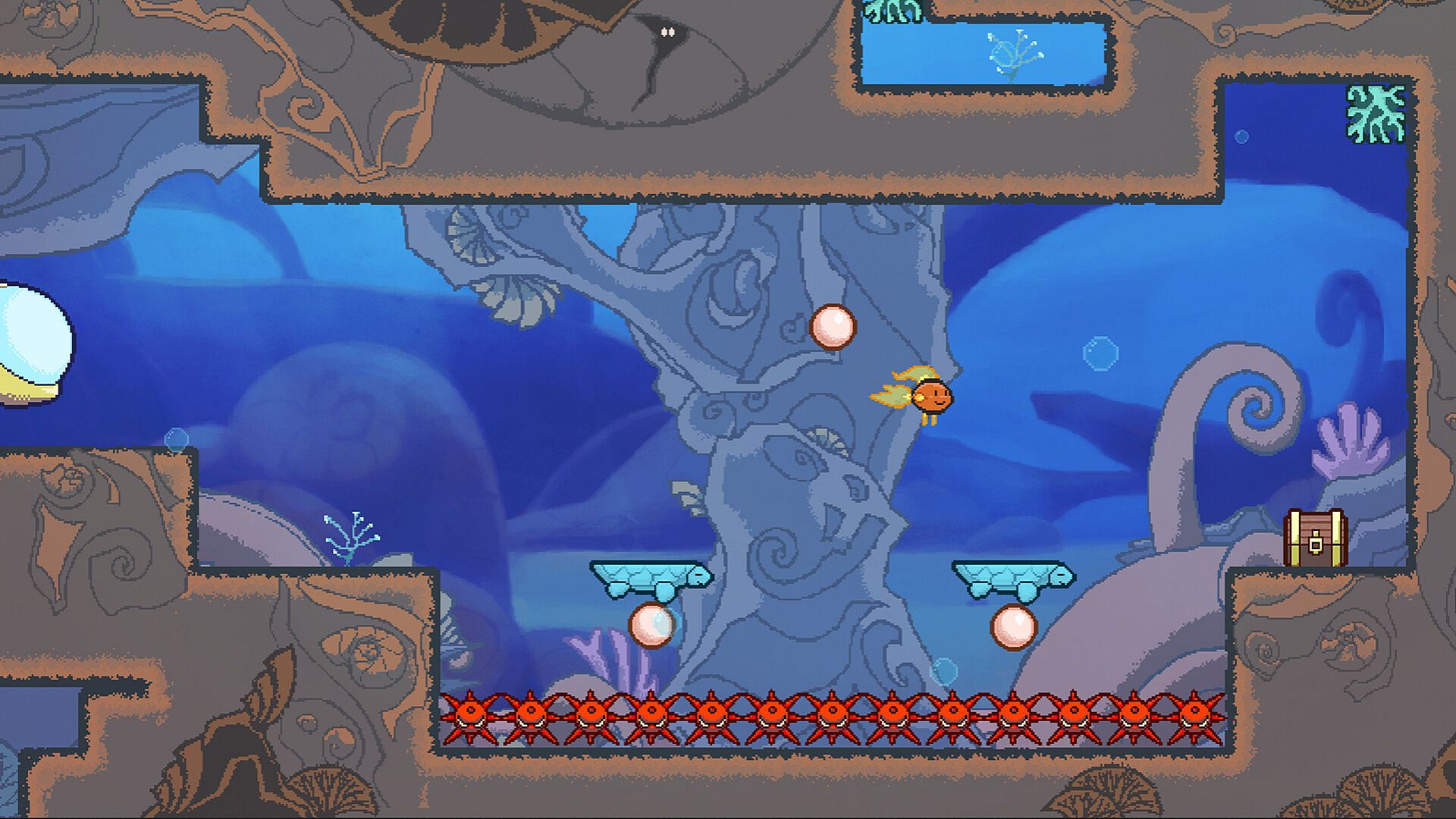 Switch between swimming and classic platform movement by carrying treasures, dropping them on enemies or switches to progress.