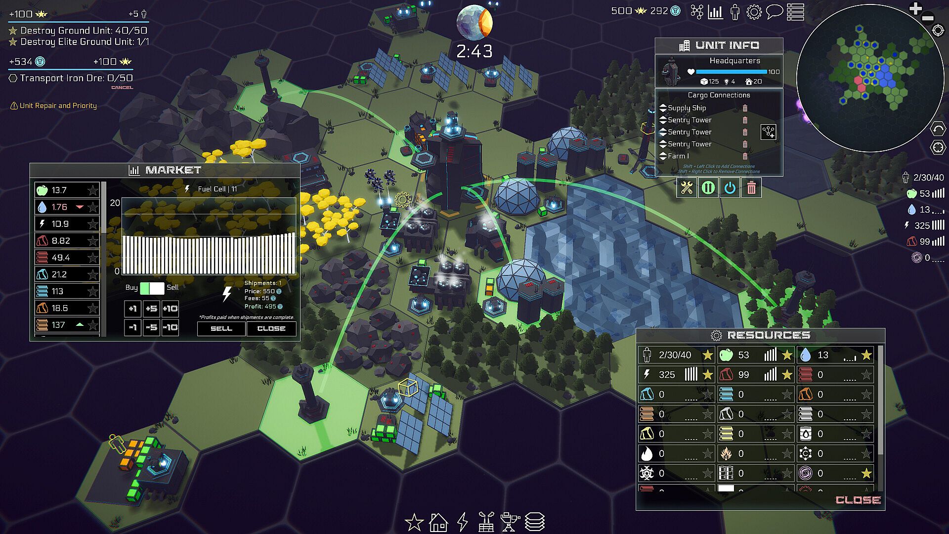 A constant stream of fuel cells and raw resources are needed to keep your defenses functioning and your colonists fed. Collect, refine, and process resources. Fuel cells and ore are needed for buildings and colonists need water and food. As your population grows you can support more and more buildings.