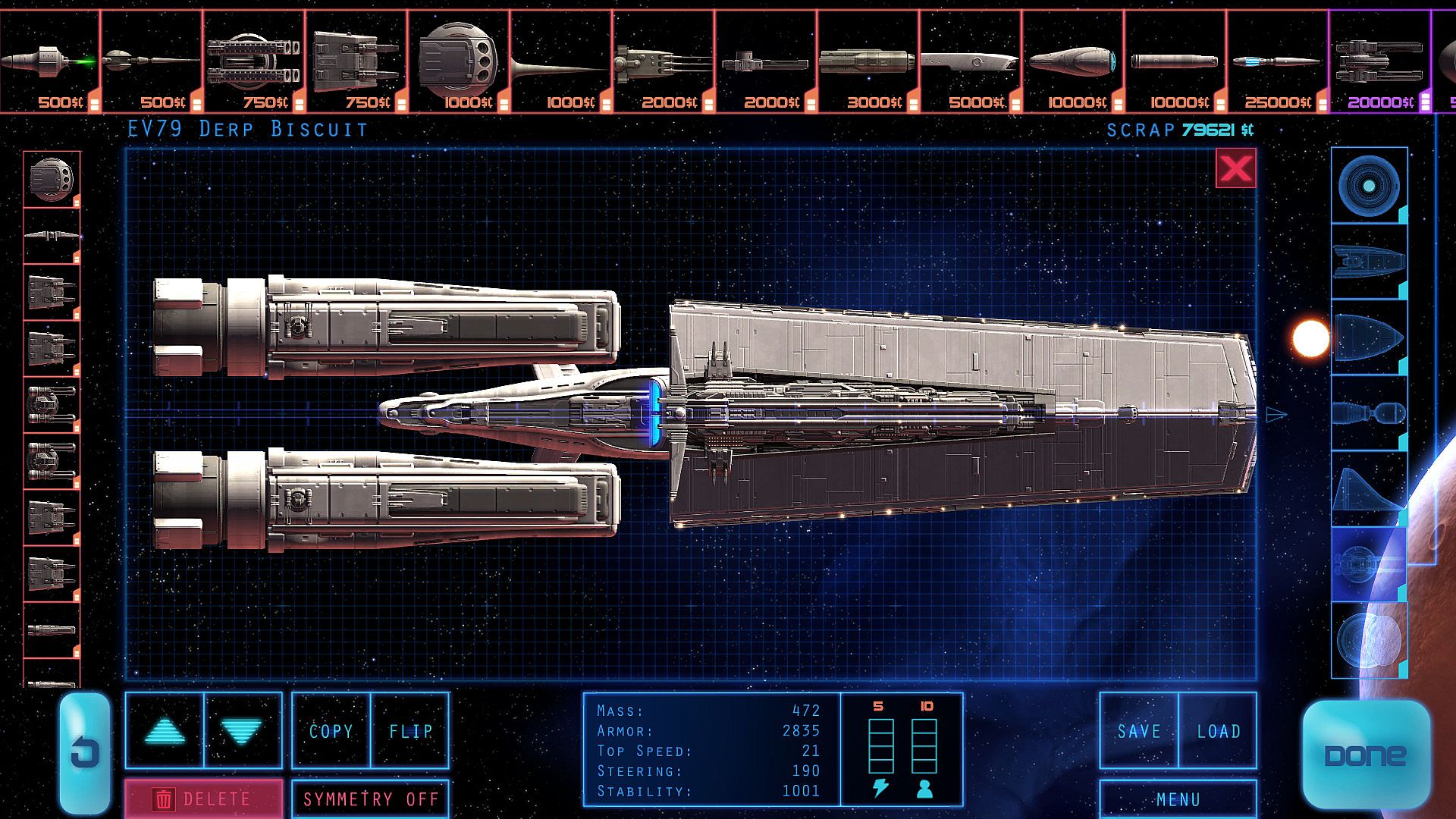 - Weapons - Choose from lasers, blasters, missiles, torpedoes, mines, rail guns, turrets, flak guns, point defense guns and much more.