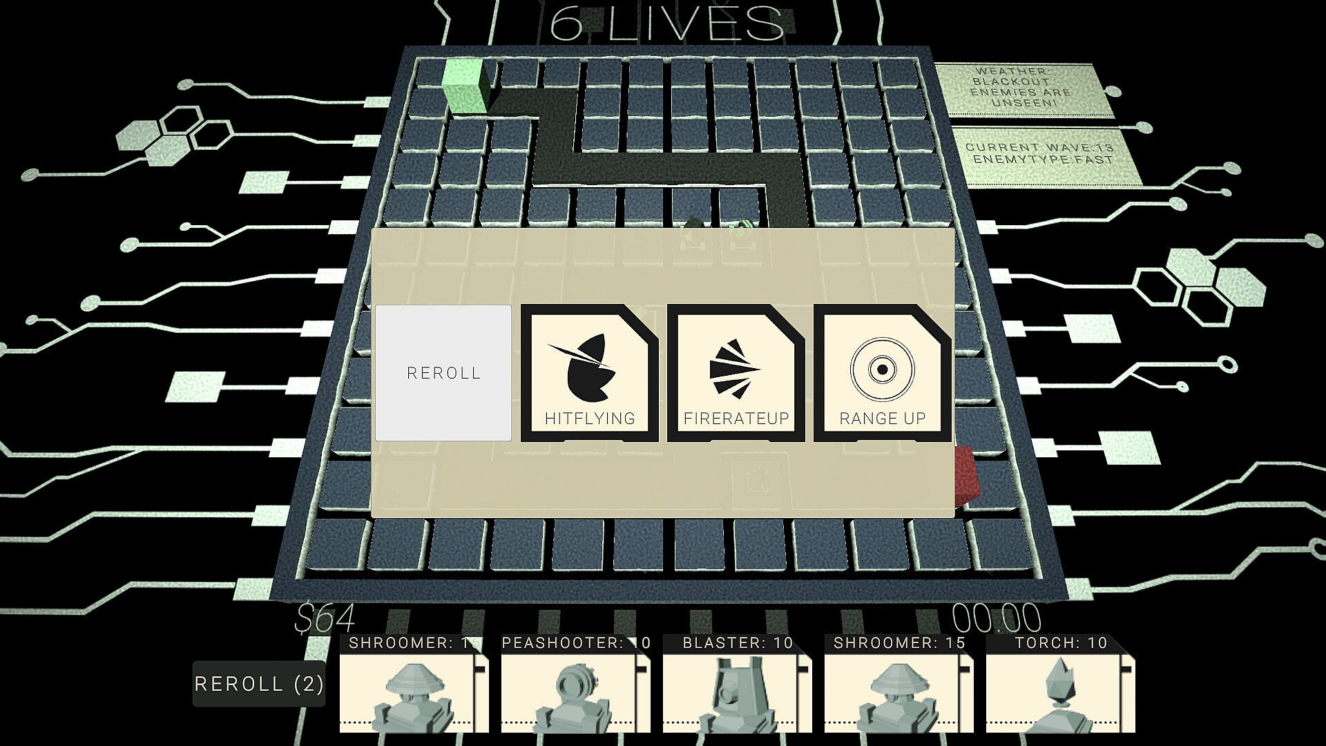 • Collect bits to build towers, adapt to your randomized shop in search of those important upgrades and strengthen your towers with Mods and Buddies to create powerful combinations.