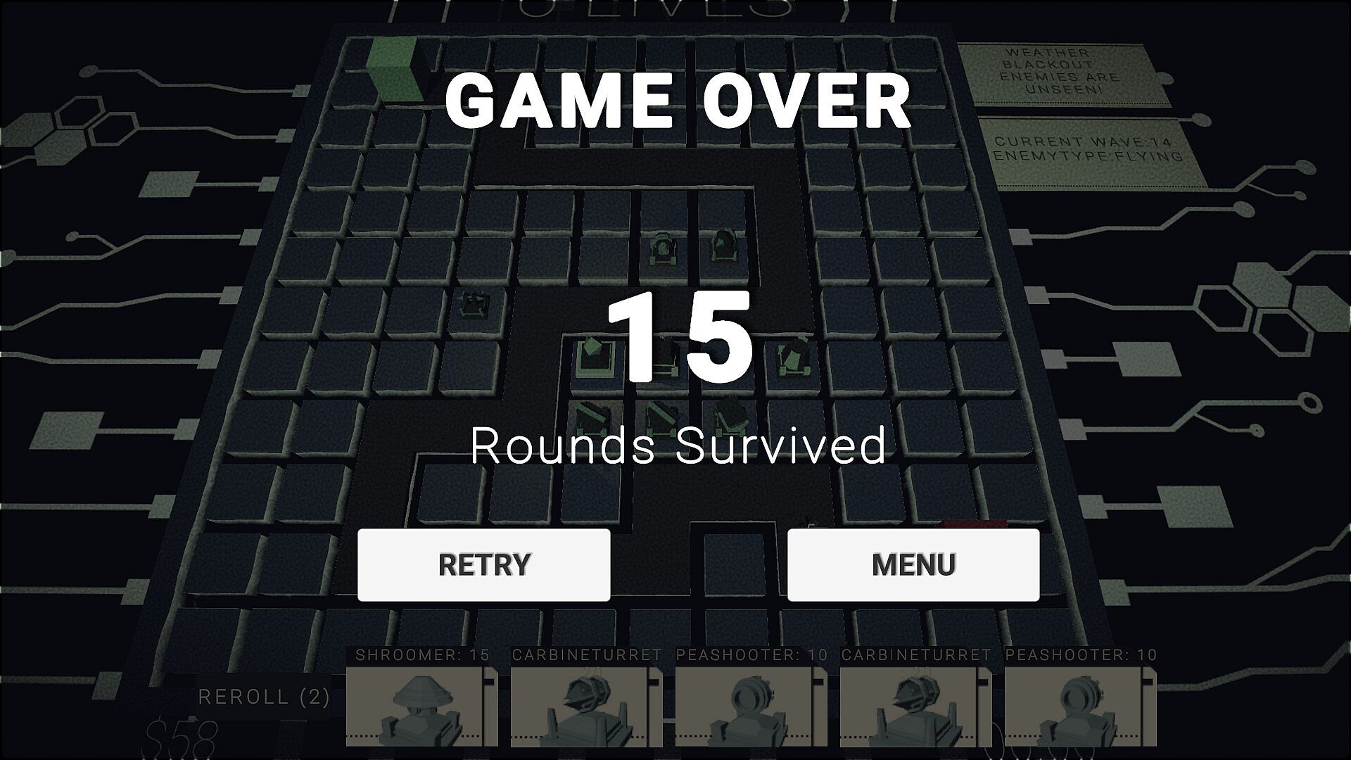 Survive Ninety Nine waves. Build a board of towers from different manufacturers with varied abilities, equip them with Mods and Buddies and plan ahead to deal with enemy-buffing weather forecasts.