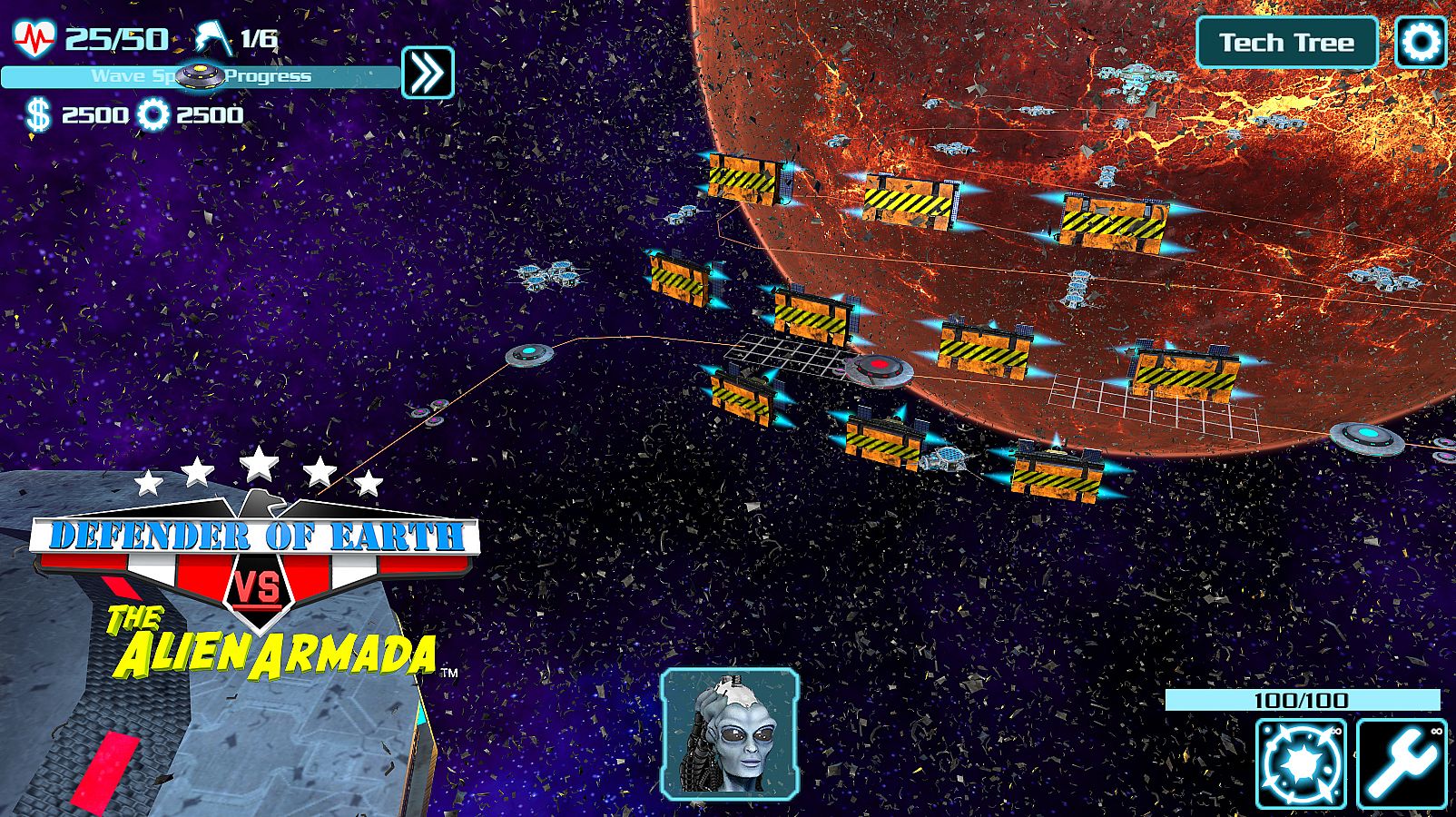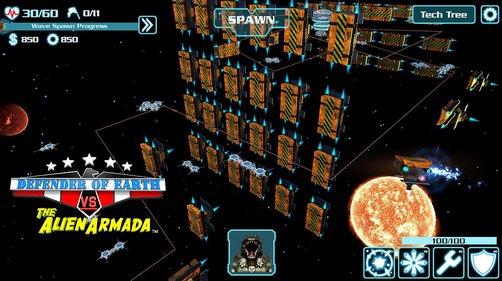 Defender of Earth vs The Alien Armada is an exciting space themed tower defense game! You play as a general designated as the Defender of Earth (D.O.E.), and you will utilize space stations and battle platforms to deploy your towers to defend each quadrant of space. You will battle against 3 different alien races with at least 4 different types of ships. D.O.E. is fast paced action, that requires a players real time engagement to build and rebuild defenses as enemy ships blast their way to your space station. Upgrade your towers and your tech because the invading forces mean business. Balance your credits and your scrap to find the right combination of defenses to defeat your enemies. Your battles will be waged in 16 theaters of war leading up to 1 final level with all the aliens attacking at the same time.