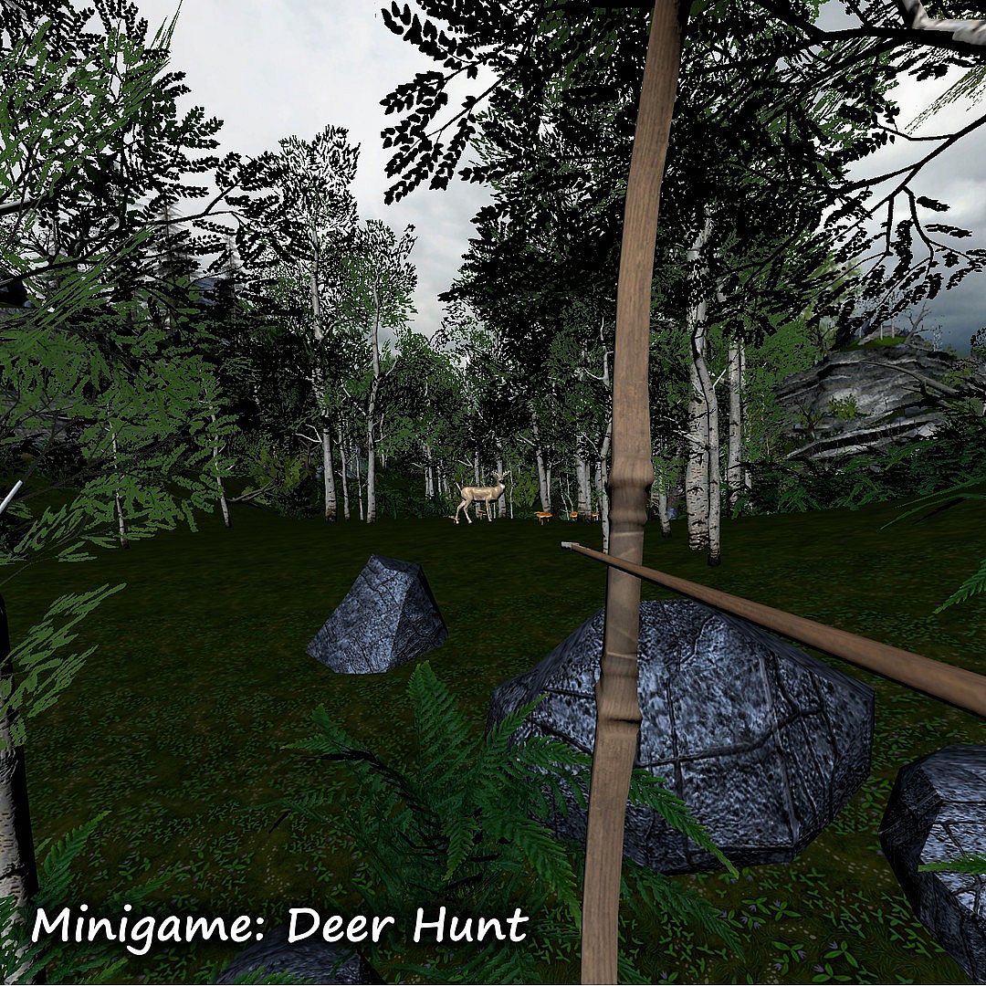 This minigame gives you a break from the intense battles to do some simple hunting in the forest (where nothing is trying to kill you for a change). This game is a test of accuracy and patience. You start with 15 arrows, and will be awarded more if your accuracy is good enough. Your final score will be total game kills. Take your time, make the shot!