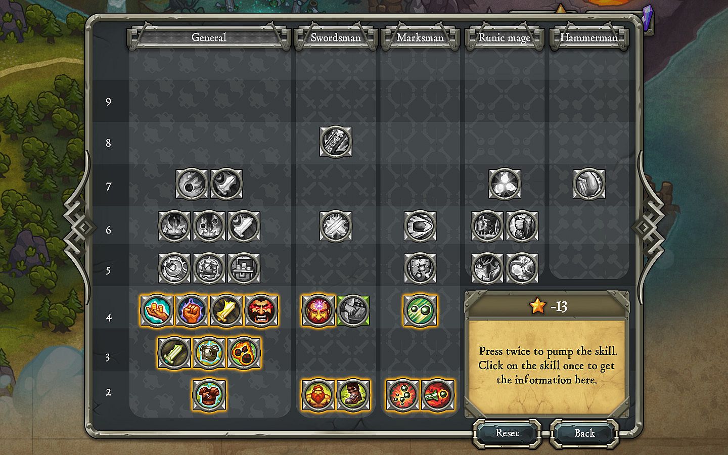 In addition to dwarf upgrades in the locations, you have various permanent skills.