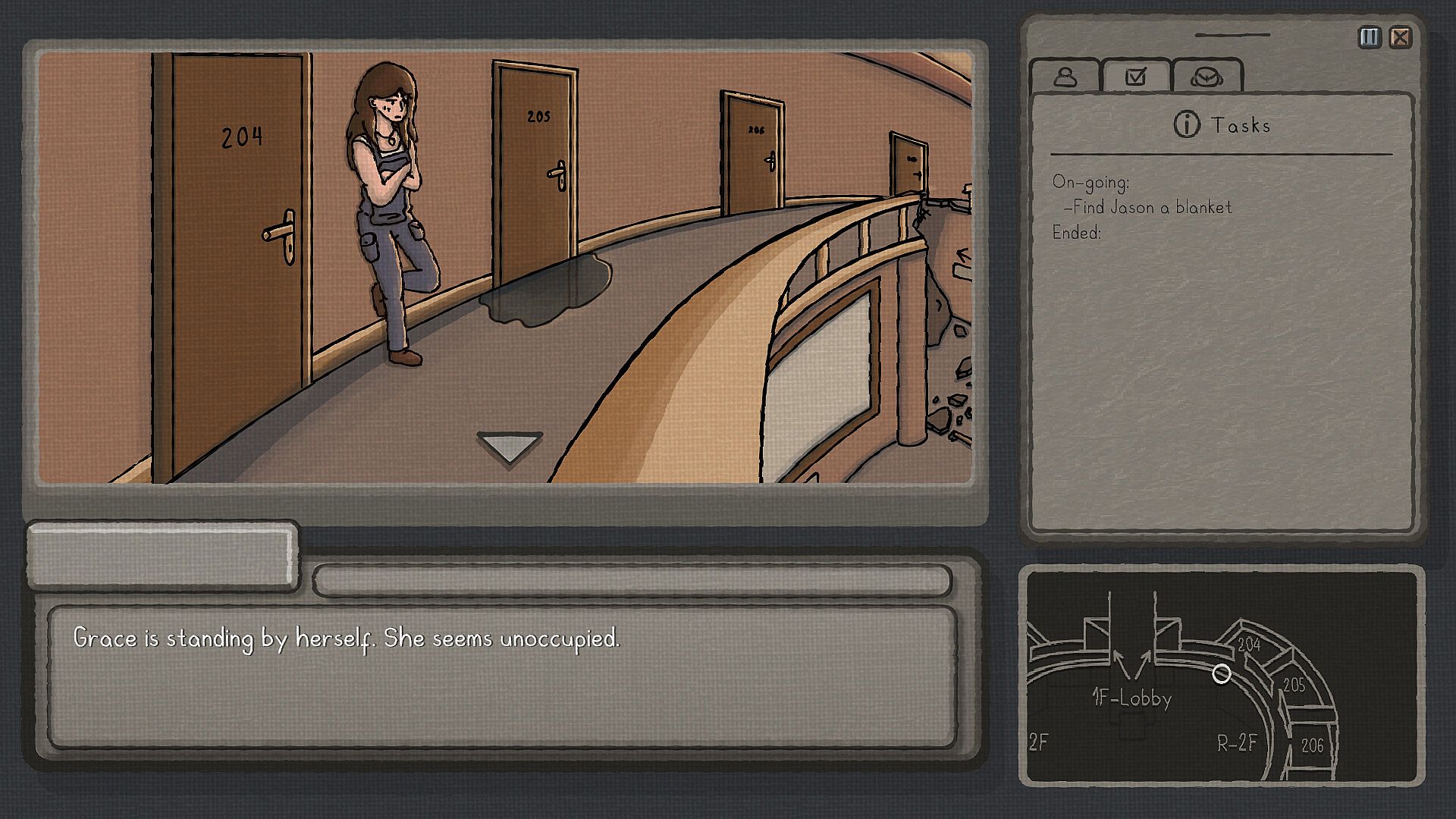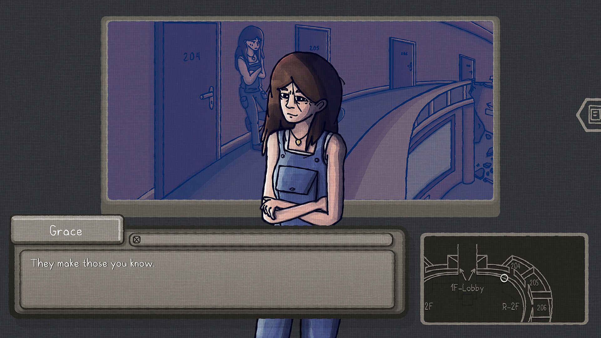 Defragmenting mixes elements of visual novels and point-and-click adventure games to tell a story of desperation, shared tragedy and a deep rooted desire to overcome barriers of ourselves in the face of an impending doom.