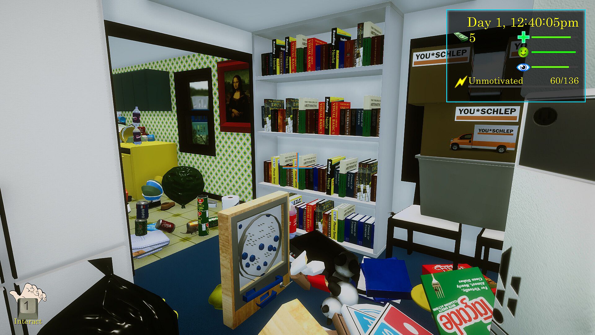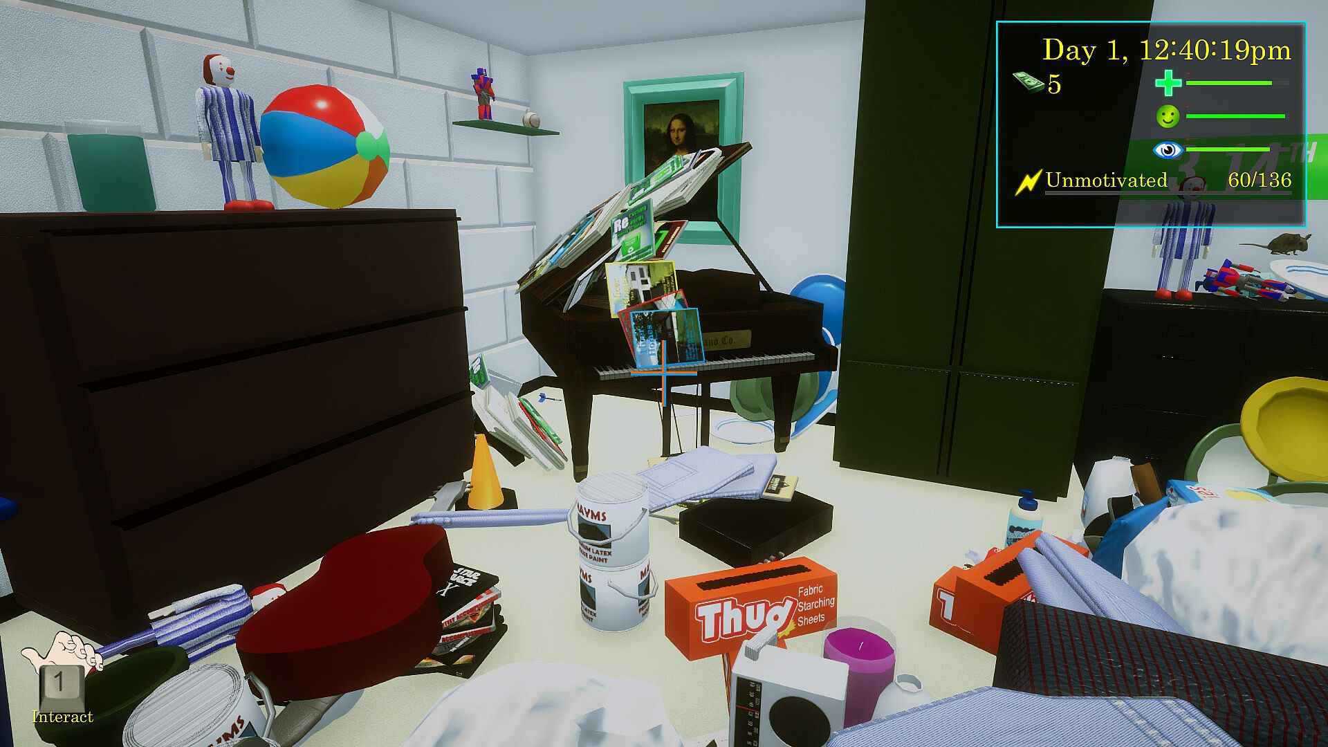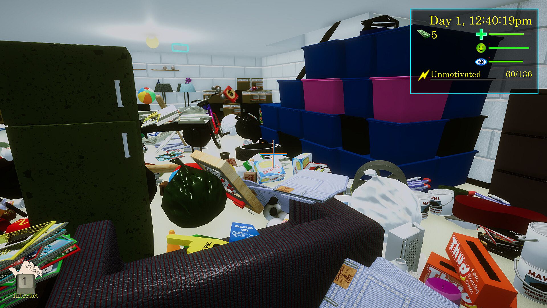"Dehoarder 2" expands on the concept of the first Dehoarder game with a full 2-bedroom house set on a beautiful suburban lane, and a story about a personal quest for healing, growth, and self-realization. In addition to having to sort through all of the junk he has hoarded, Harry must also face and overcome an onslaught of problems both self-inflicted and externally imposed.