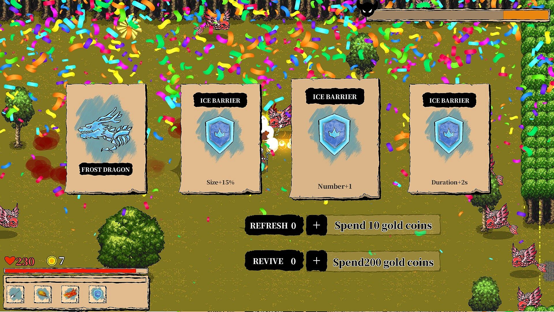 - After defeating the boss, you have the chance to upgrade your skills mythically, completely changing a skill's basic attributes. For example, Dragon Breath, which initially fires in one direction, can be upgraded to blast flames in all directions after a mythic upgrade.