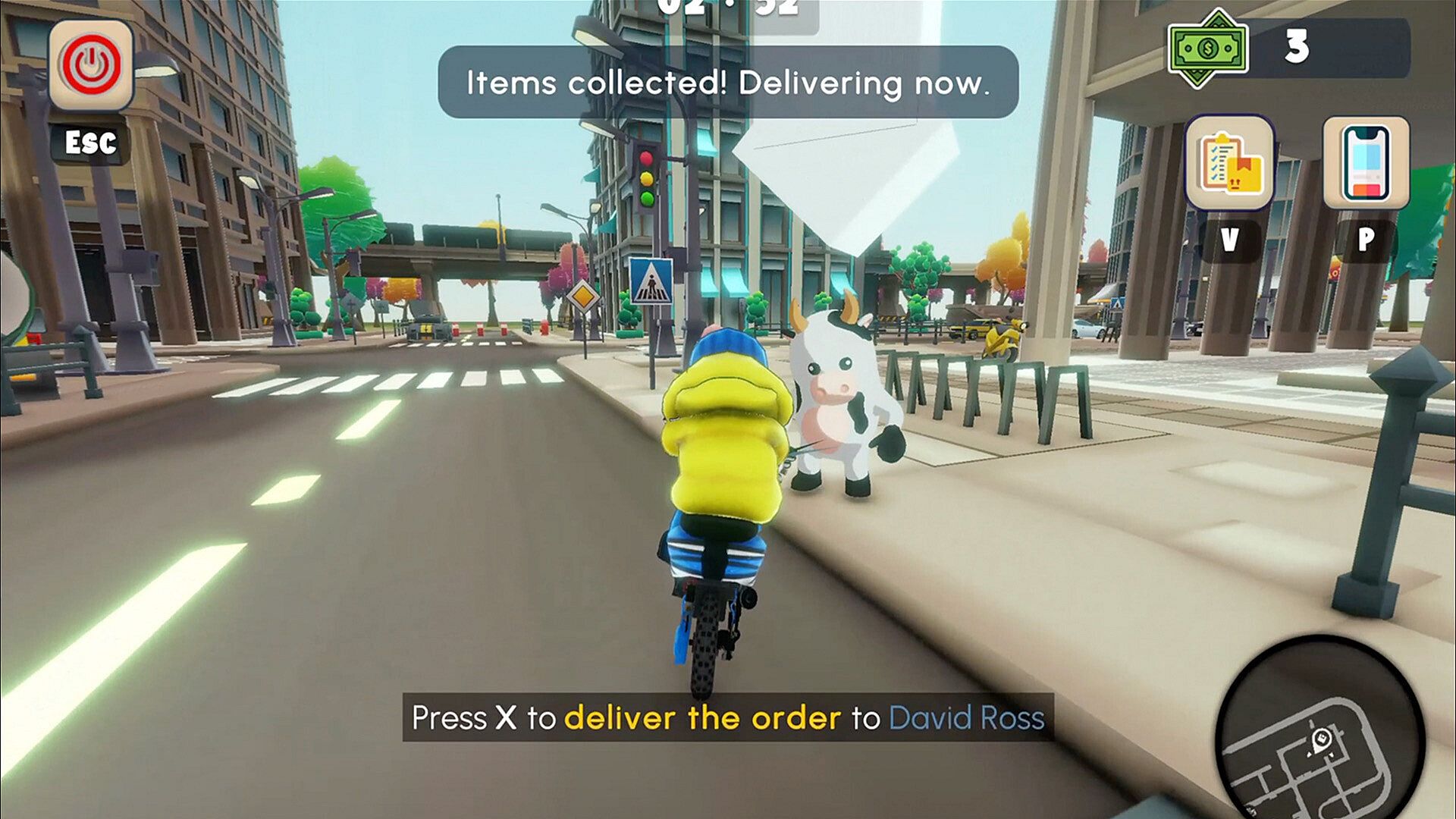 Delive-R’ Us is a quirky single-player delivery driver simulation game that blends fast-paced gameplay with life management mechanics. Accept or decline jobs through your in-game phone, then hop on your moped to navigate city streets, collect grocery items, and race to make timely deliveries. The faster and more accurate you are, the better the tips — but if you're too slow or sloppy, customers will cancel and your gig rating will plummet.