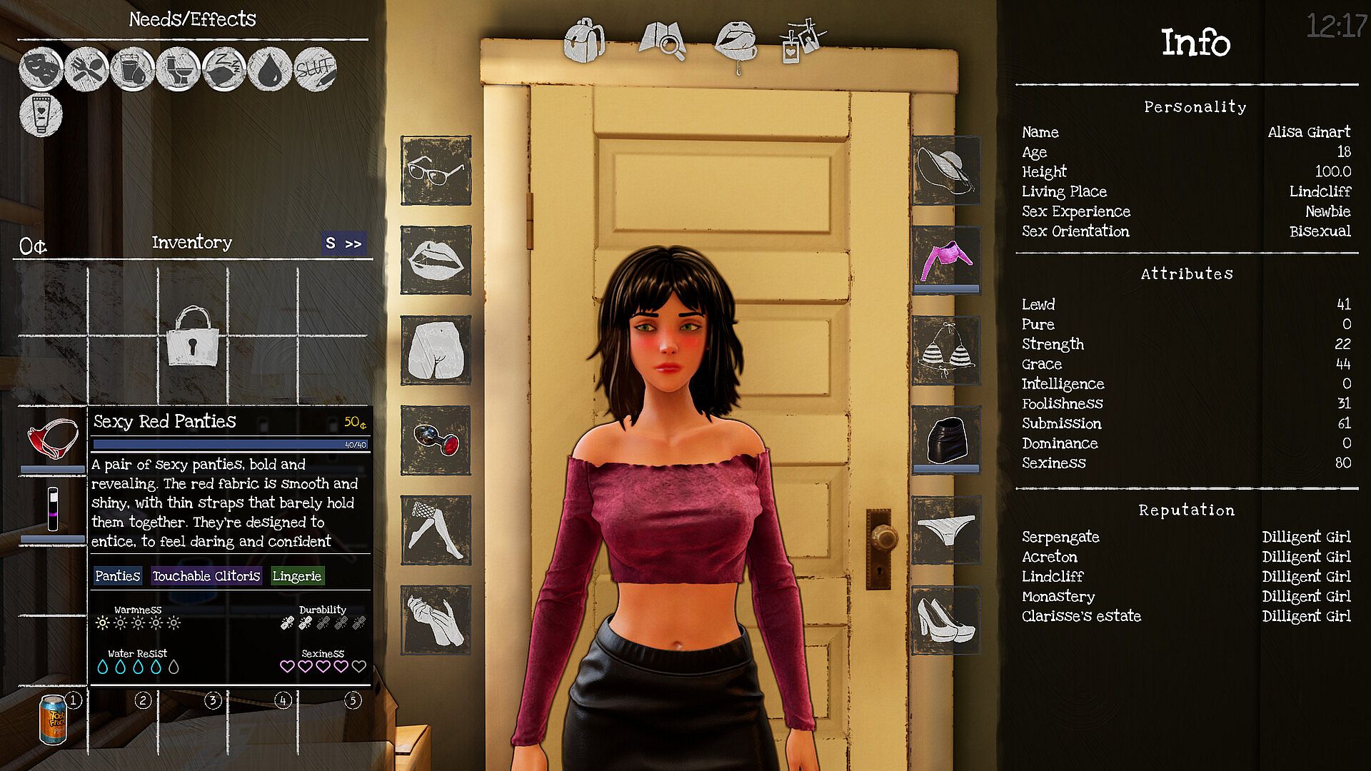 • Exhibitionism: Gradually unlock the ability to wear more revealing clothes... or no clothes at all!