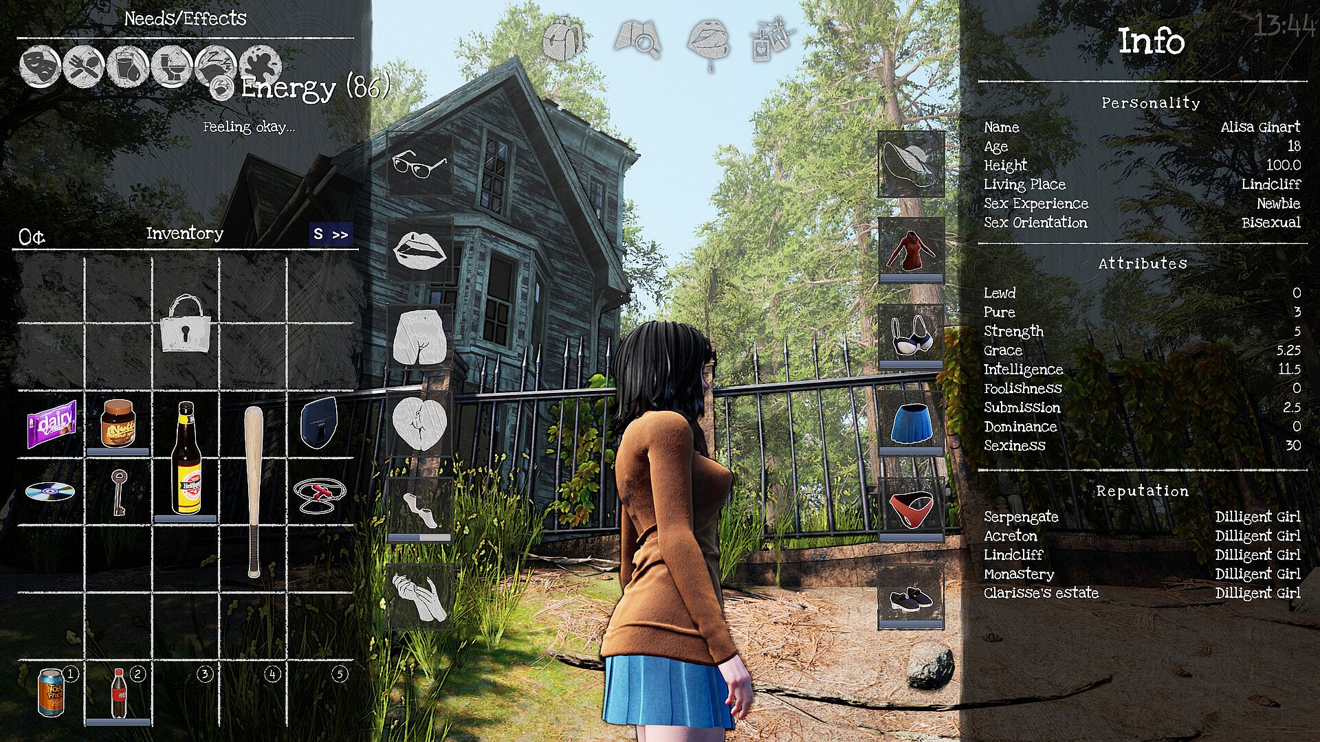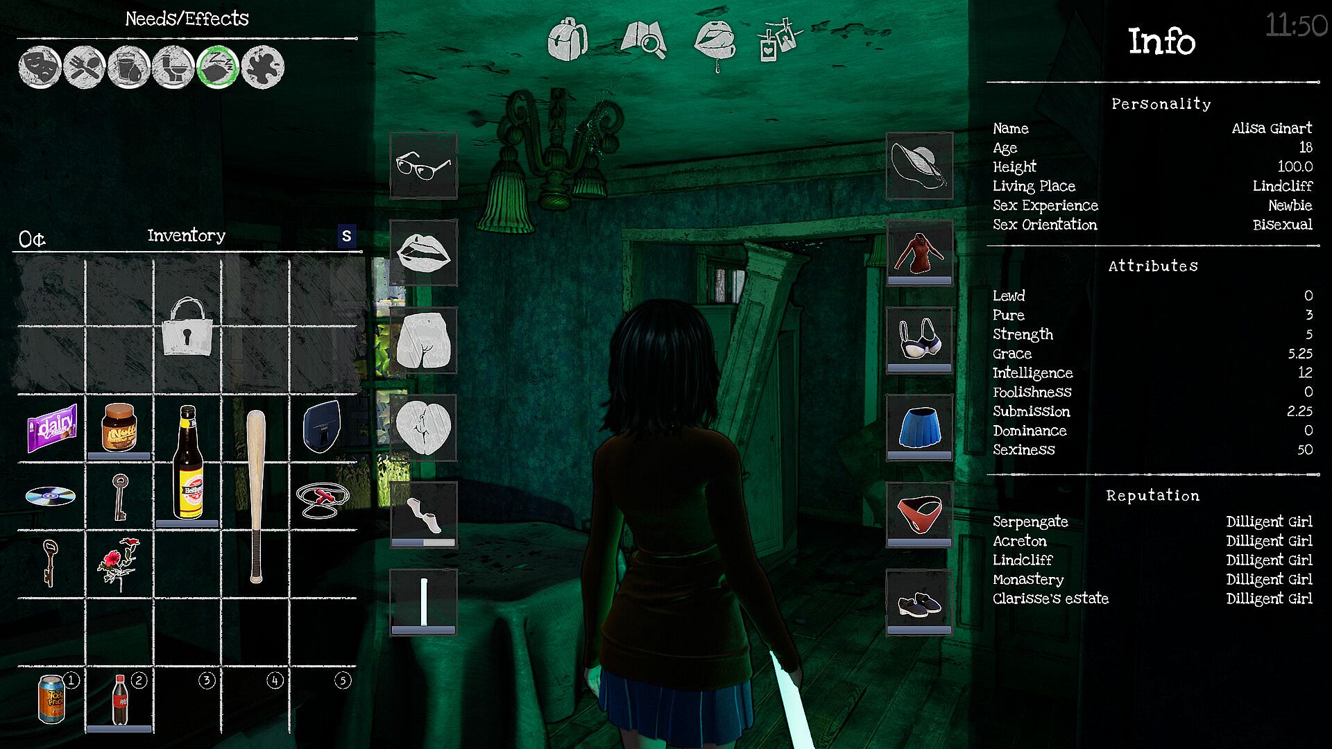 • Keep Alisa happy and satisfied as well as tending to her regular needs: energy, hunger, arousal and others
