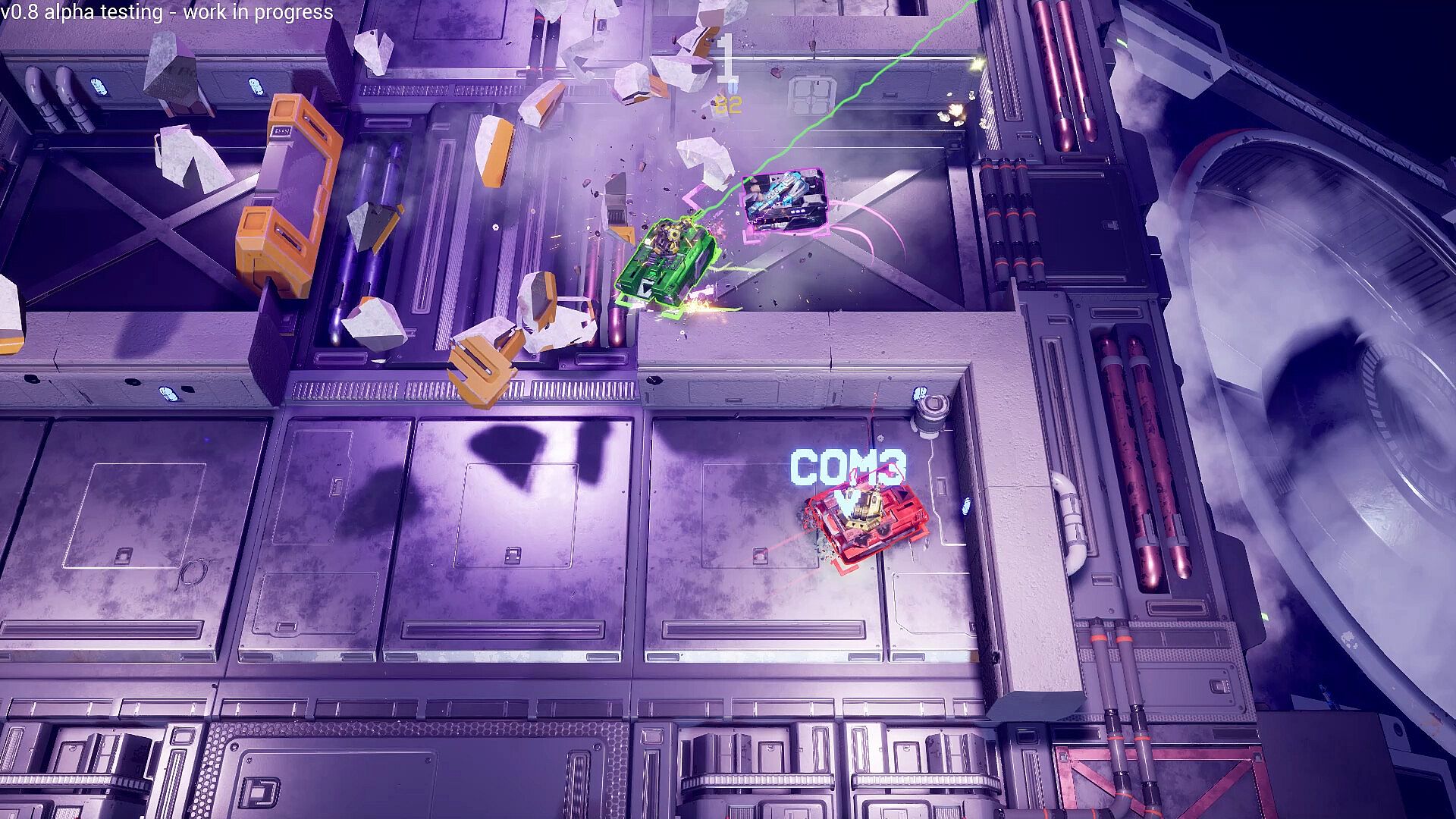 Shred and grind your friends (and friendships…!) into pieces in this heavy destructible top-down physics-based arena shooter! Pick up one of many available quick-swap turrets and enjoy your anihilation of enemies on the destroyable battlefield. Roam around in your hover tank, dash around obstacles, jump above enemy rockets (what?) and finally - destroy DEM TANKS!
