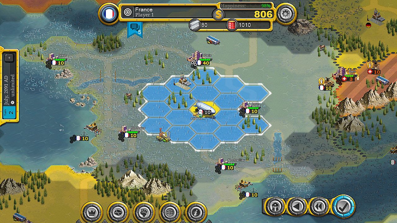 As opposed to other turn-based strategy game, Demise of Nations tries to focus on both, a fun single player and a thrilling multiplayer experience. The game strives to be easy to learn with a streamlined user interface. Single player comes with skirmish matches against the AI as well as a hotseat functionality for local play. Multiplayer can be played cross-platform and includes a ranking and rating system.