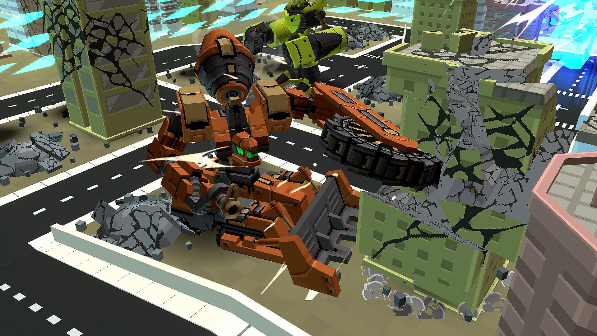 This game is a 4-player non-fighting robot game, kind of a speedy party-couch action with the deception essence of a werewolf game.You are the pilot of a giant robot and destroy many buildings on the level faster as possible.