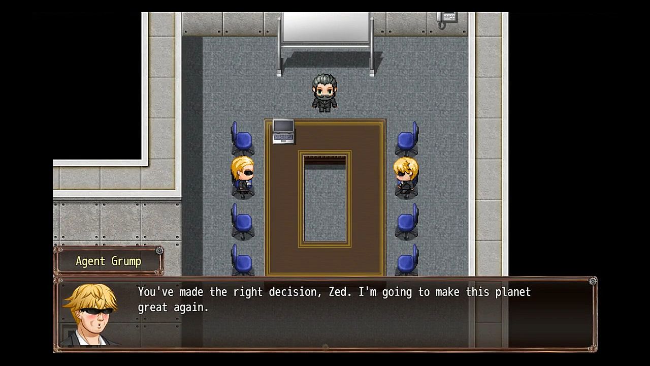 From the creative minds that brought you Metal as Phuk, The Chronicles of Quiver Dick, and Quiver Dick's Terrible Tale For Terrible Parents To Read To Their Equally Terrible Children, Crankage Games brings you another hilarious tale full of satire and parody! Play as Ronald J. Grump, a secret agent hellbent on deporting illegal extraterrestrials from outer-space off of his home-planet! Follow Agent Grump as he drains the swamp, deports aliens, and makes Earth great again!