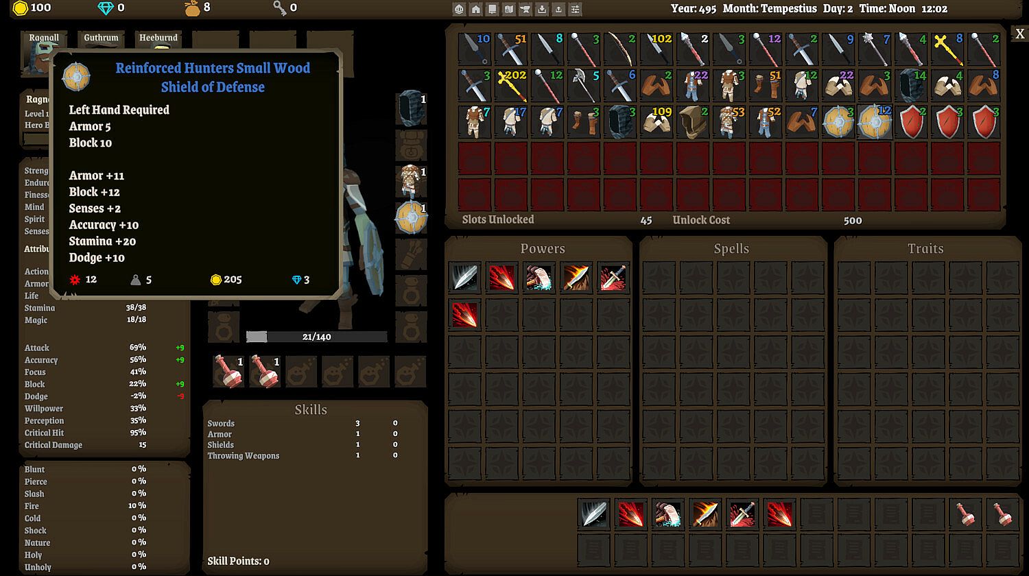 • Hero Death, Wounds and Aging - When a hero is killed they can be resurrected through magic or healer NPCs. Wounds are semi-permanent attribute debuffs that can also be removed with spells or by healers. Heroes will age and receive attribute debuffs as they grow older.