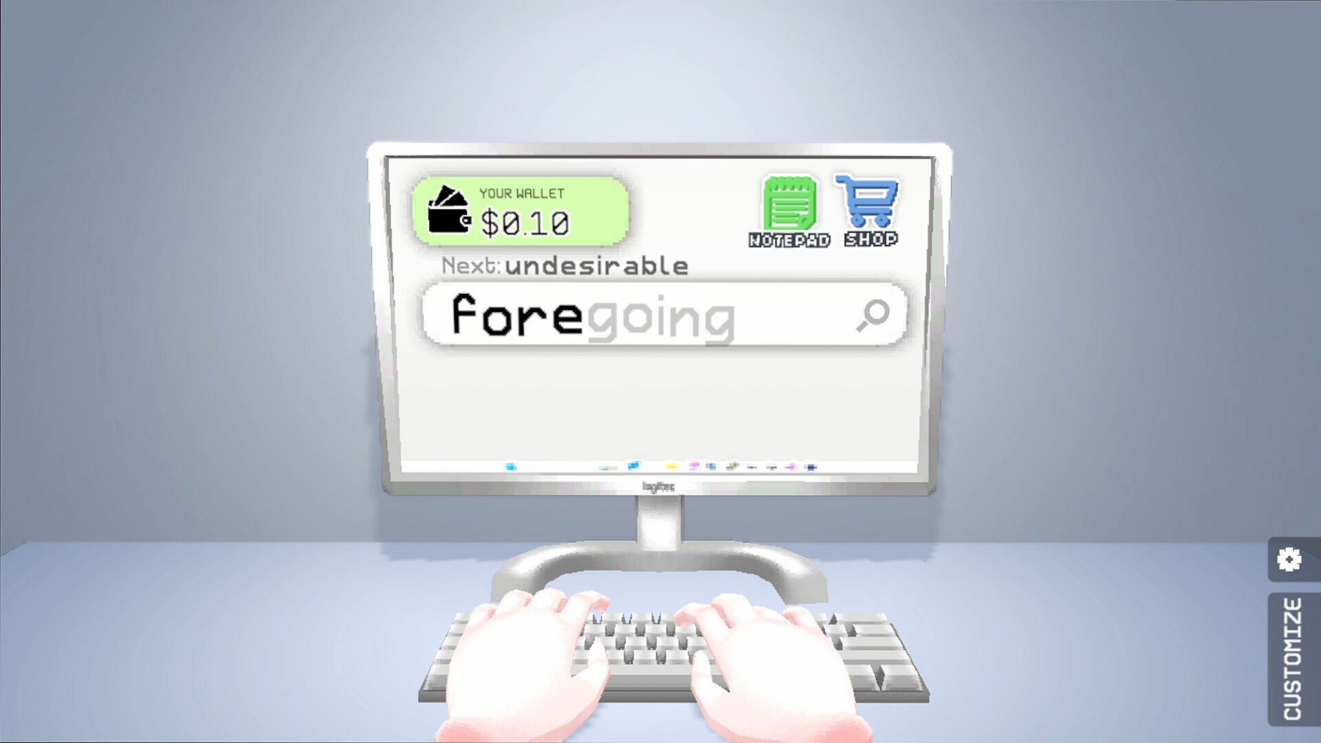 DescTop is a cozy typing game where you can type at your own pace, in your own speed, how ever you like. You can type the target word given to you or you can type your essay in the ingame notepad; whatever you type you will be rewarded for it.