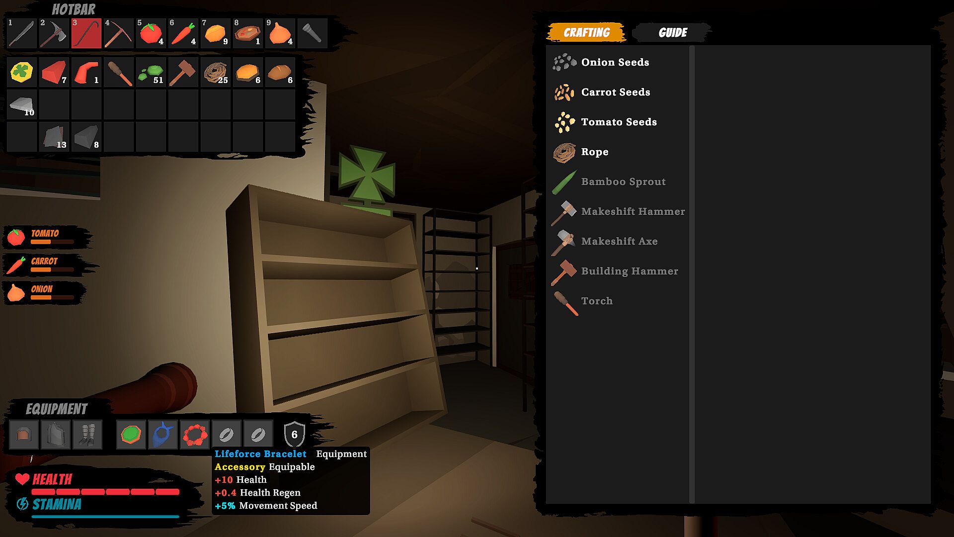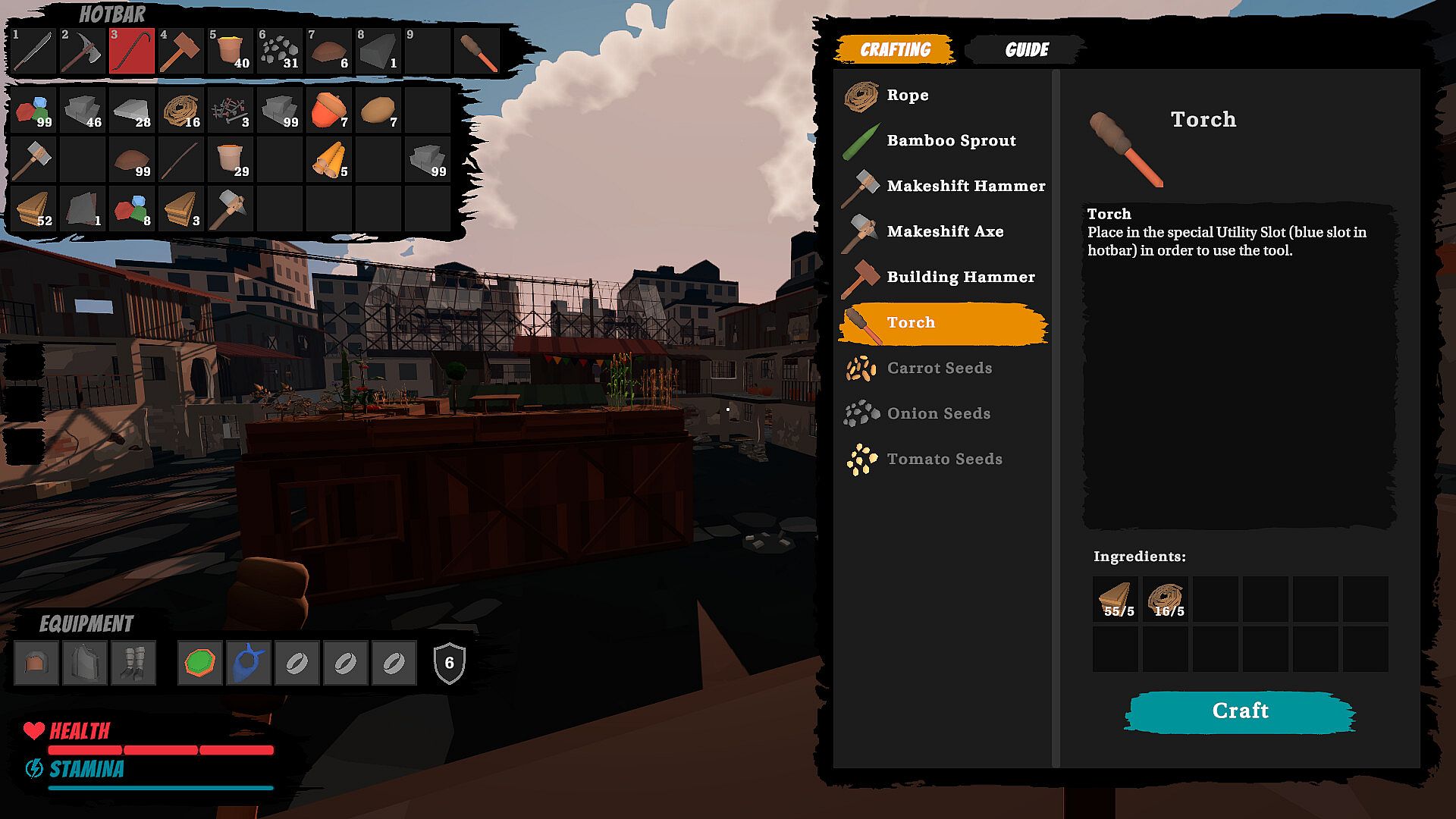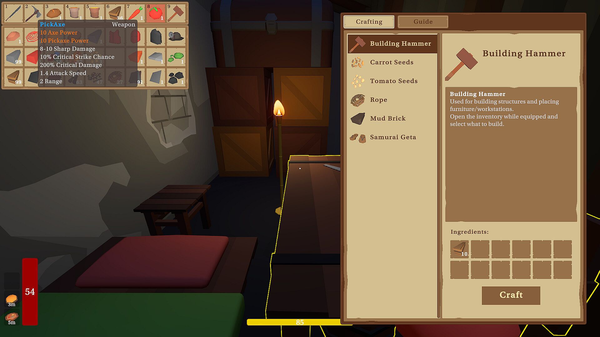 Gather materials from your environment to craft essential gear, tools, and items. Upgrade your workstations and unlock advanced crafting recipes as you progress. Everything you need to survive can be crafted if you’re resourceful enough.