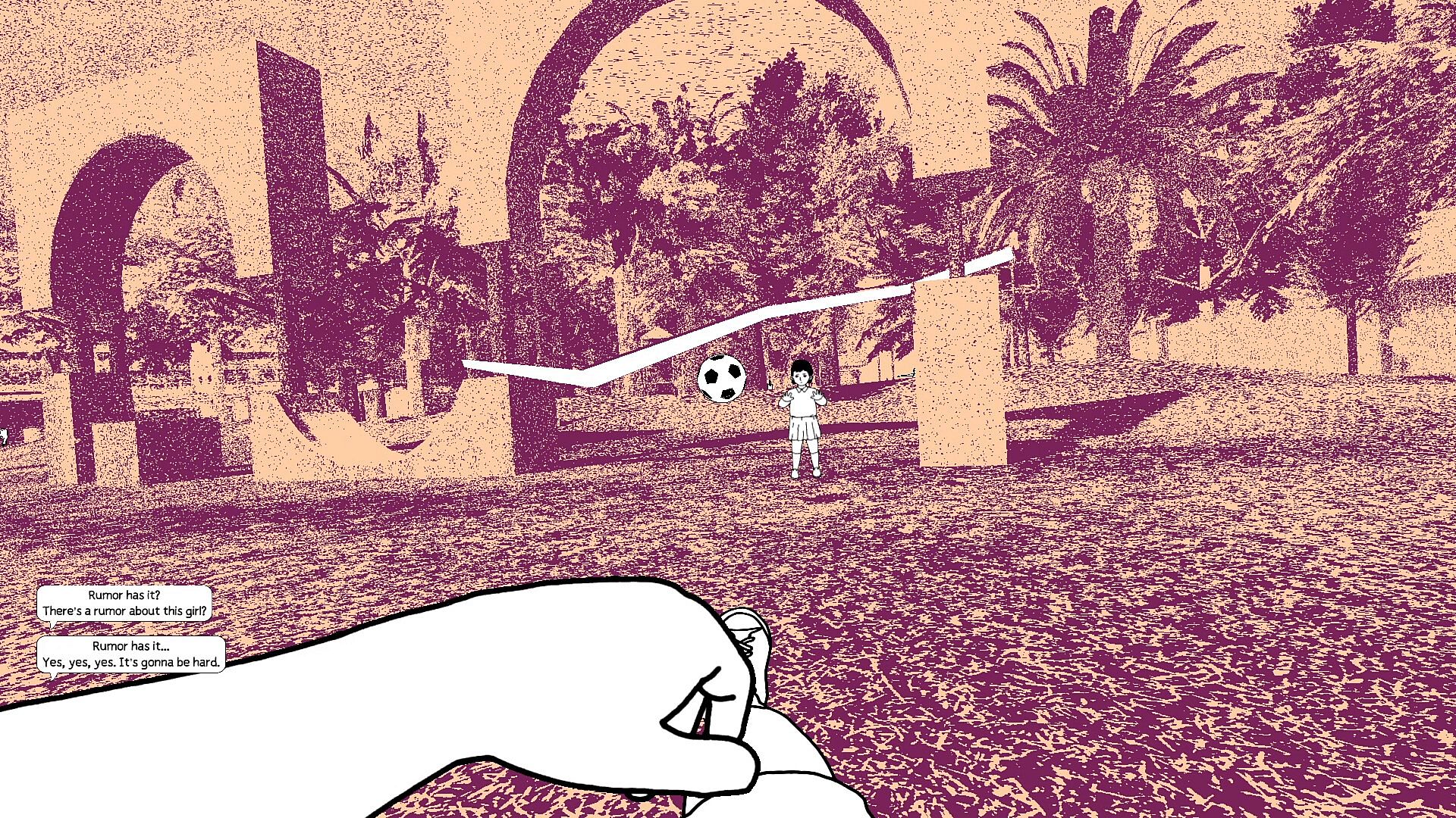 A physics-based soccer ball that feels good to kick around in a first-person perspective.