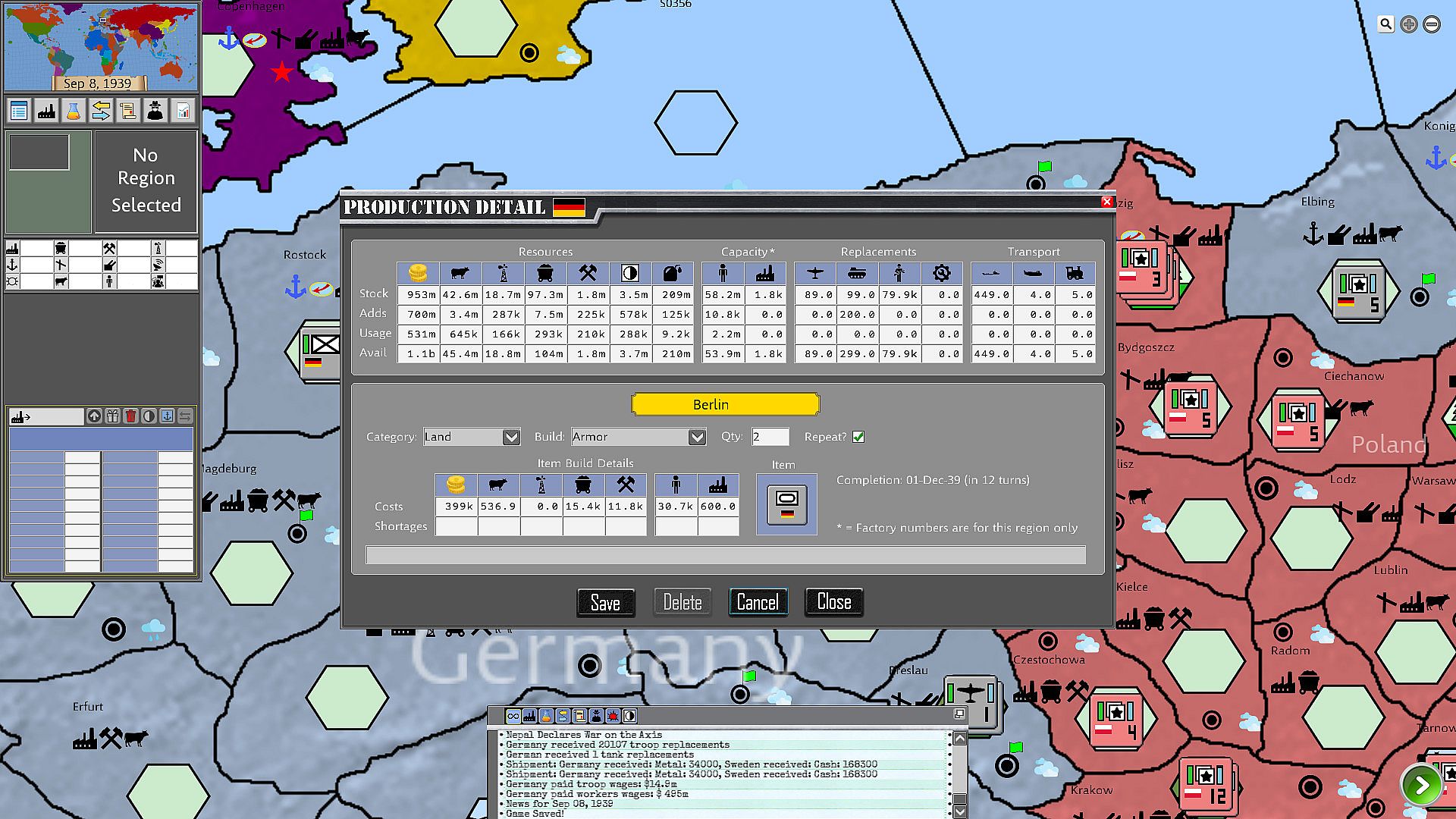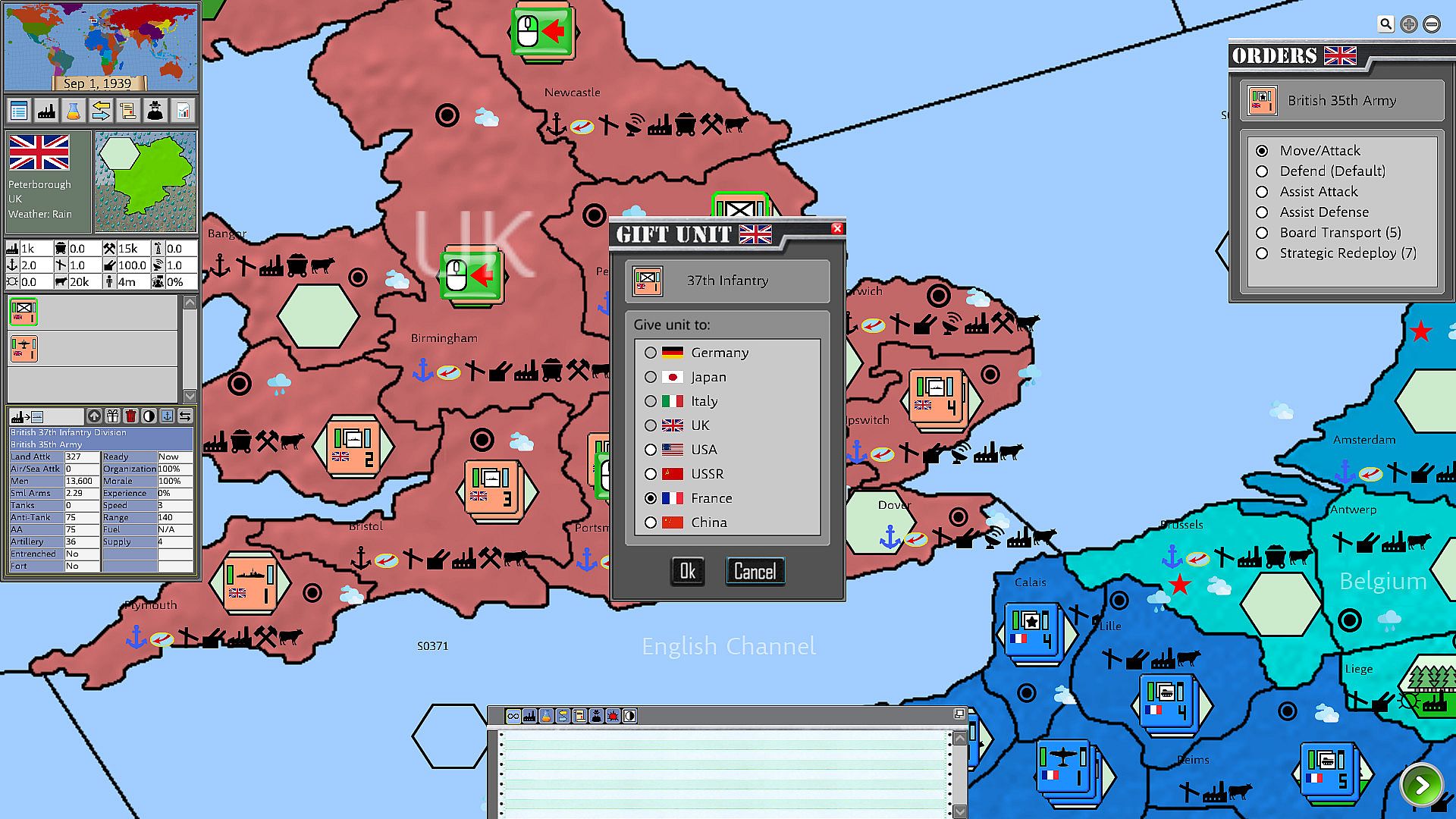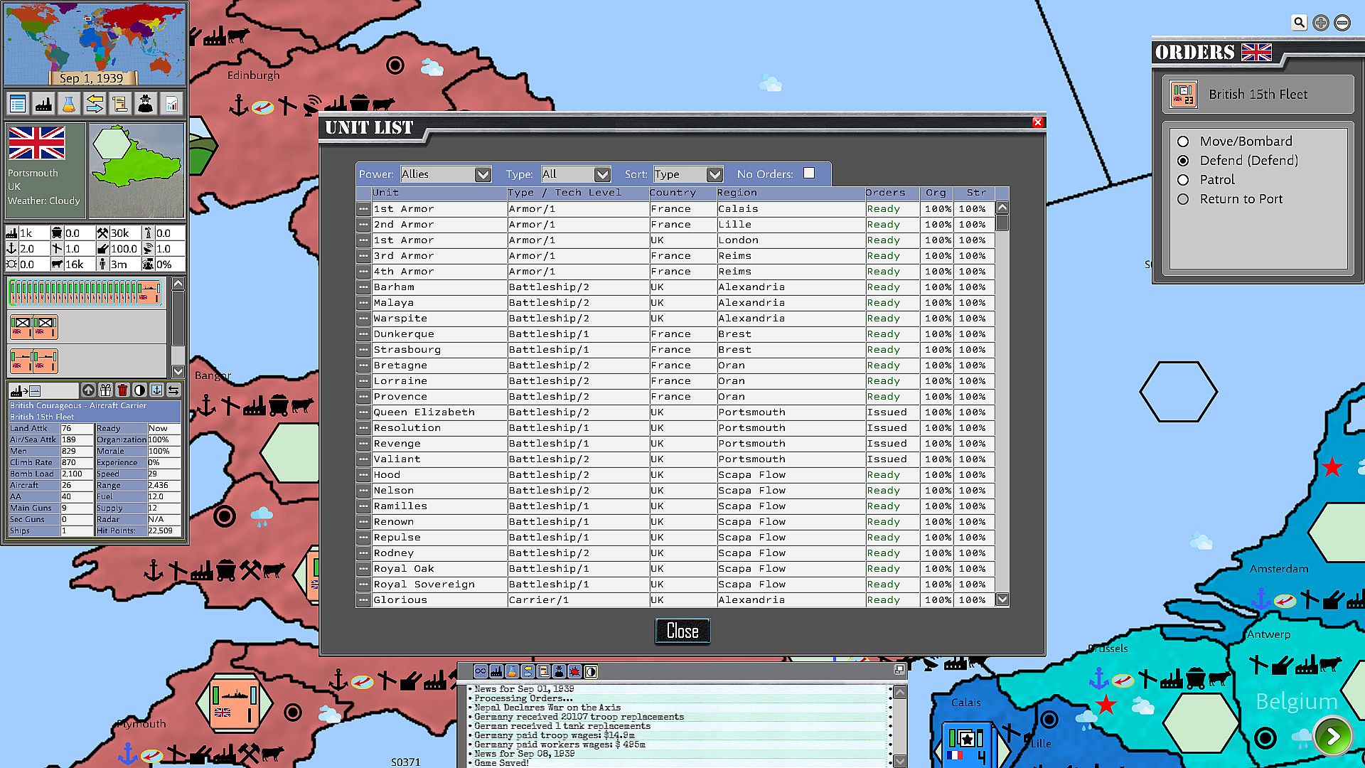 Take on the role of a major country during World War II. You will control your country's production, trade, research, espionage, and command your troops in battle. Can you do as well as your historical counterpart? Or do you want to explore "what ifs" to see how history could have been changed. The entire world is included in the game. Want to attack Brazil? The choice is yours.