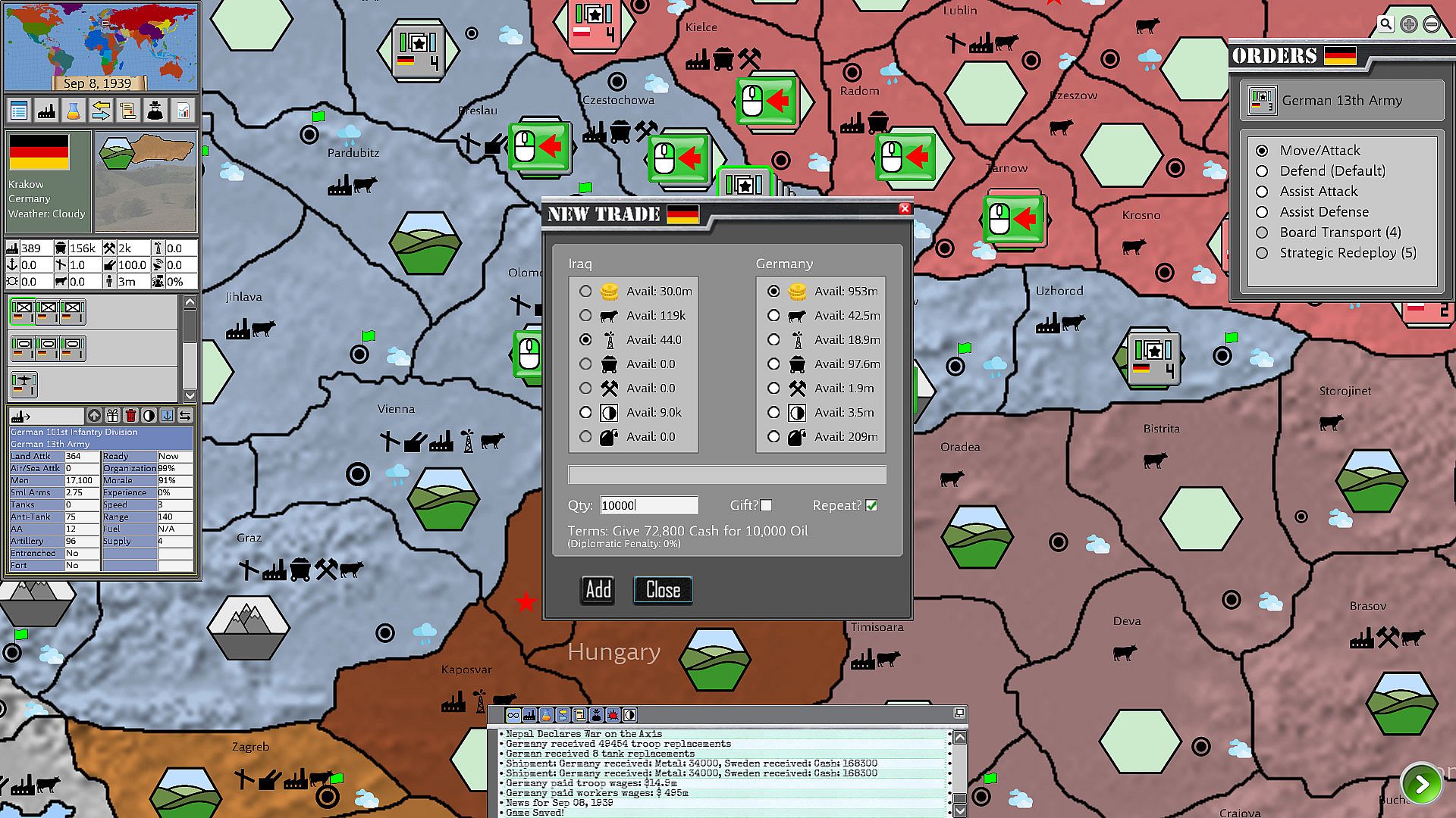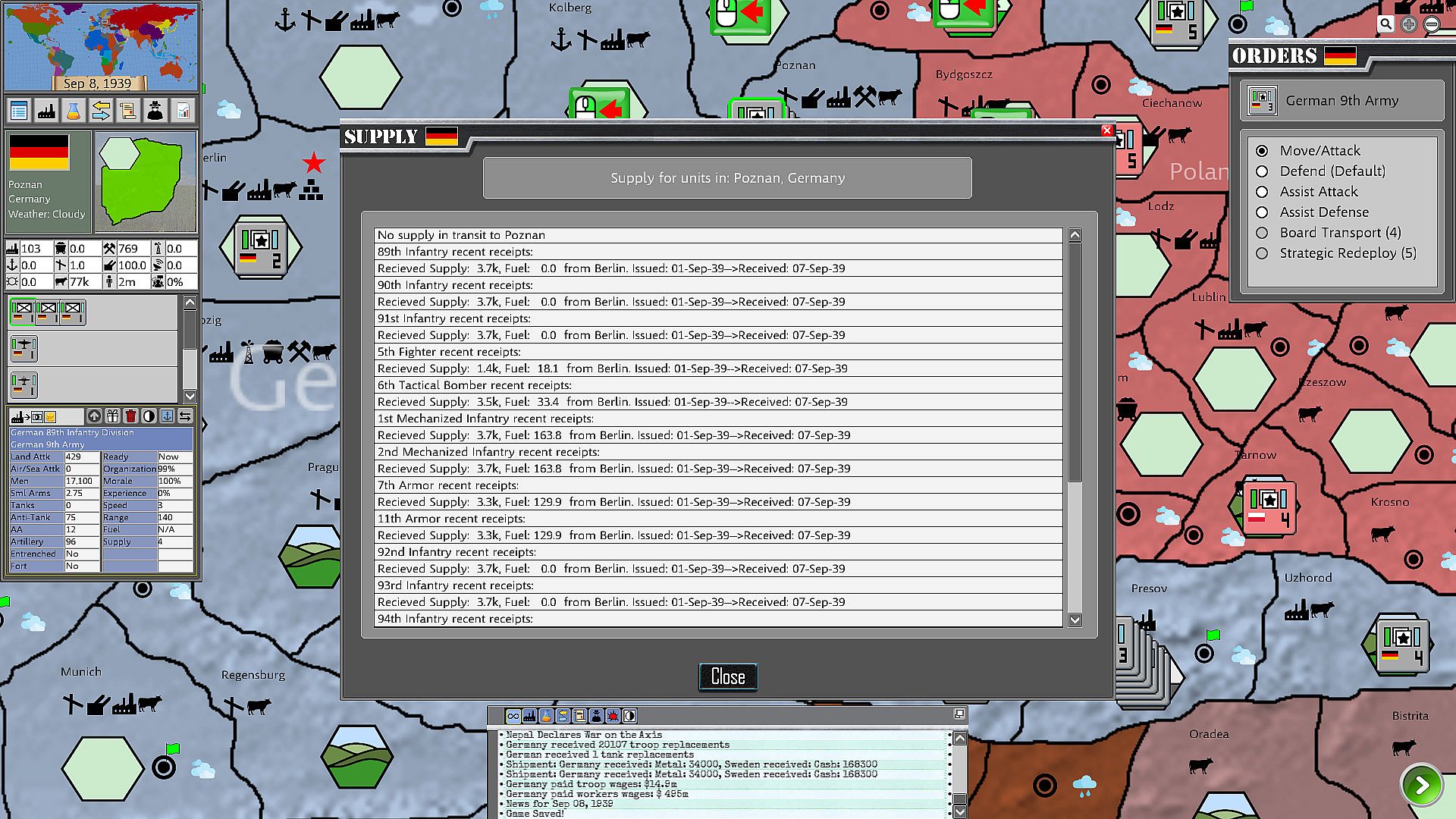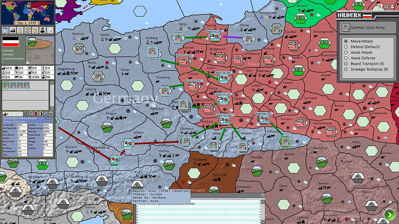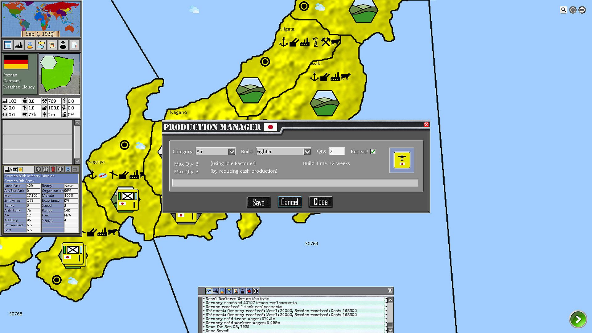Take on the role of a major country during World War II. You will control your country's production, trade, research, espionage, and command your troops in battle. Can you do as well as your historical counterpart? Or do you want to explore "what ifs" to see how history could have been changed. The entire world is included in the game. Want to attack Brazil? The choice is yours.