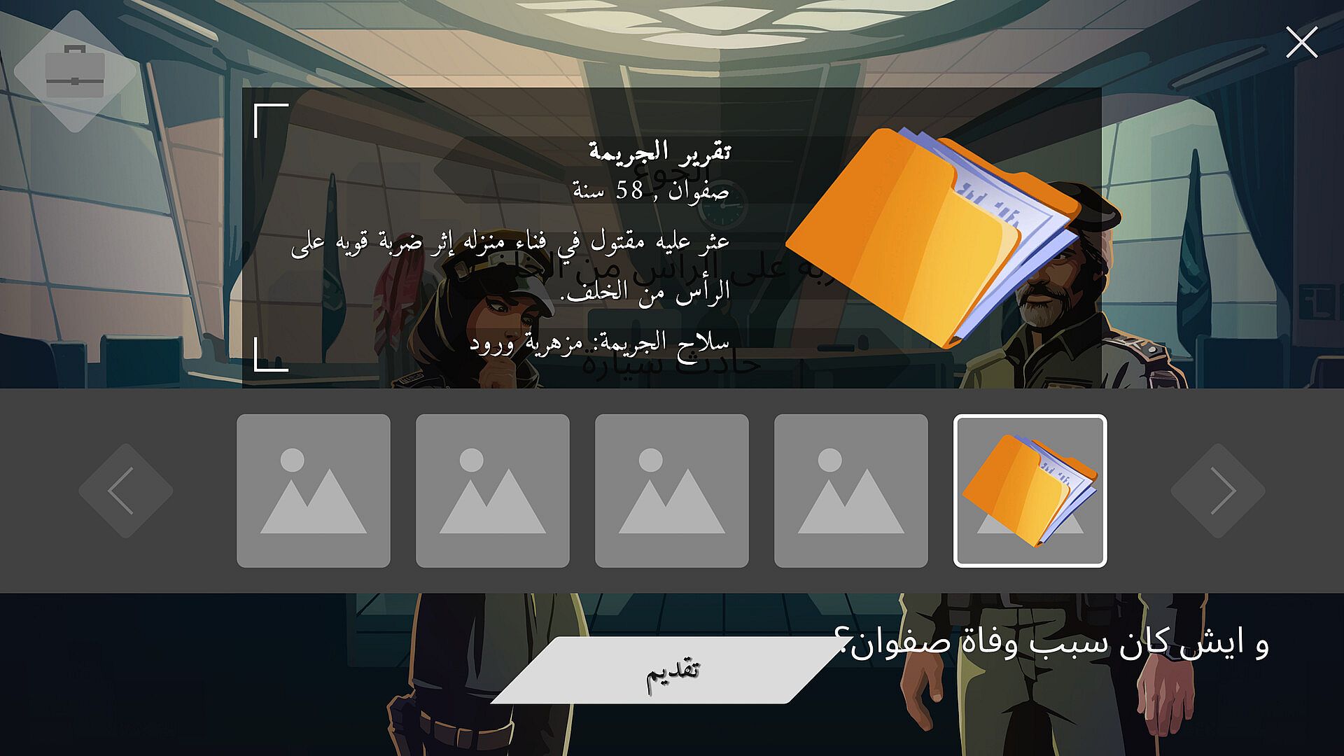 Detective Dana is a 2D story-rich game (In Arabic language only) about an Arabic police officer investigating murder cases. Investigate the crime scene, interrogate the witnesses, solve the mysteries and uncover the secrets until you catch the criminal!
