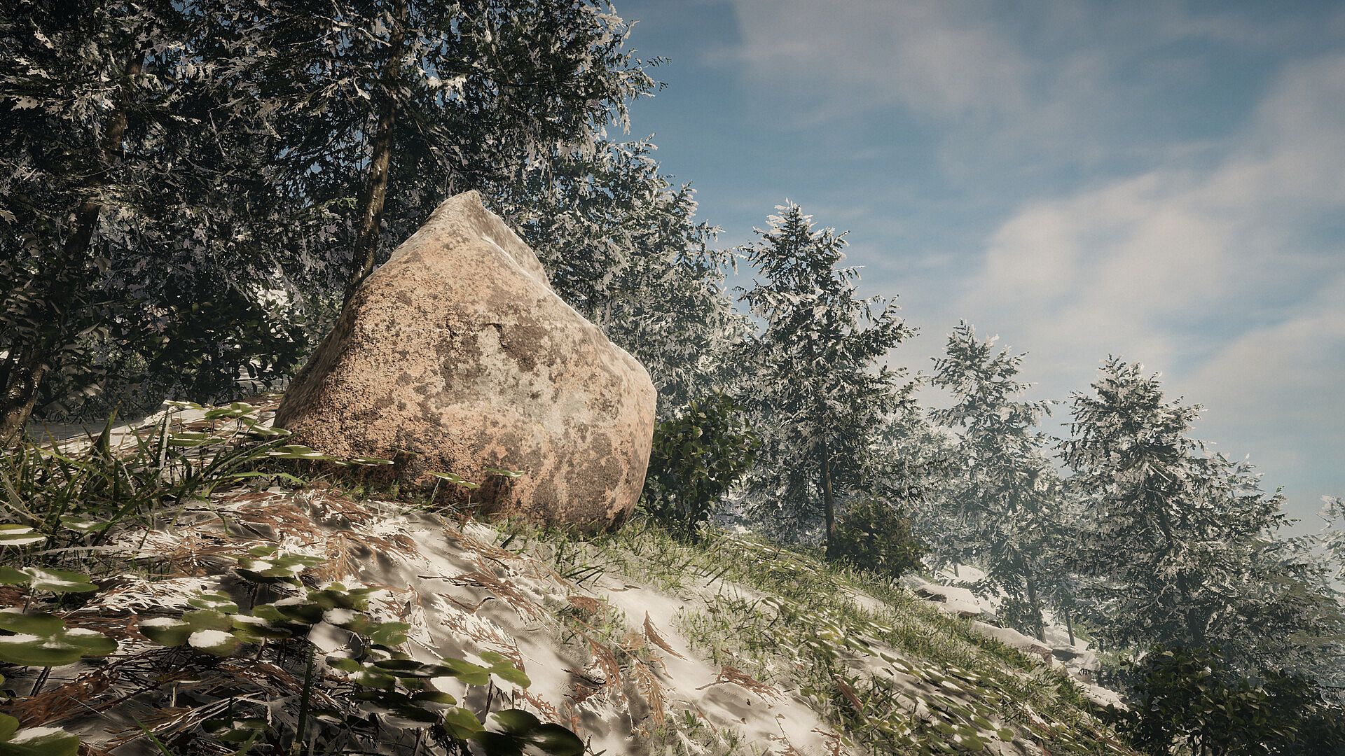 Every object you grab has collisions and interacts with the environment. Push things with a stick, hit objects or move things out of the way. Your hands will dynamically touch and rest nearby walls or surfaces. Foliage rustles and bends when you walk through and slows you down.