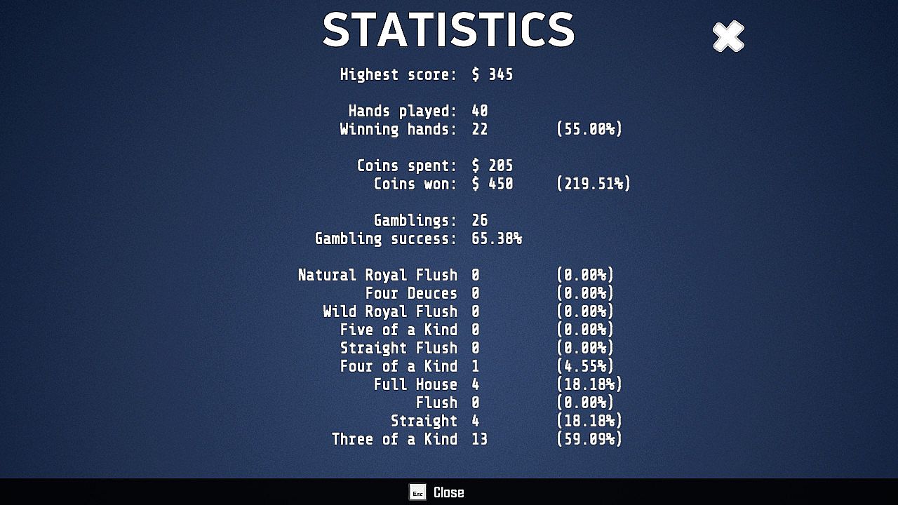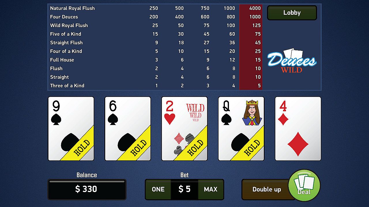 All the basic rules of poker are adhered here and the maximum win is 4000 coins for Natural Royal Flush (No wild cards).
