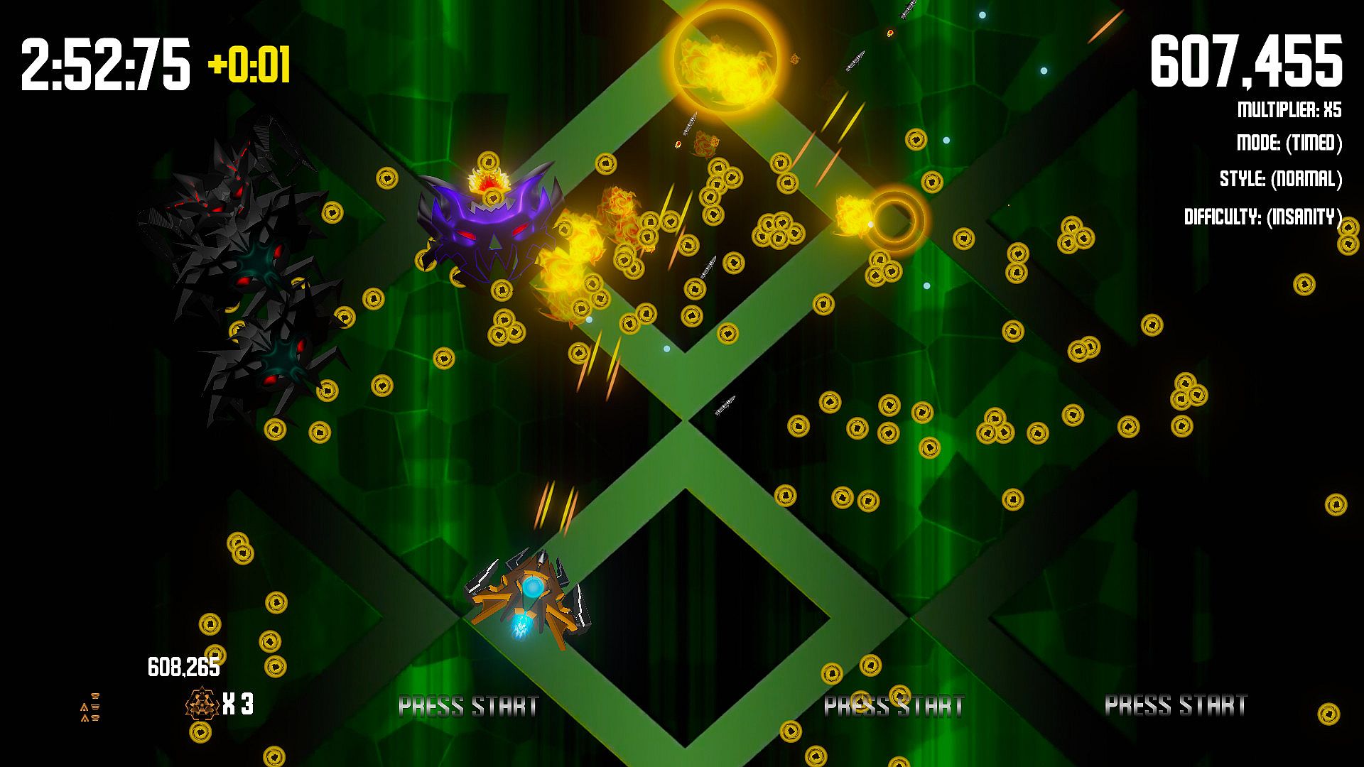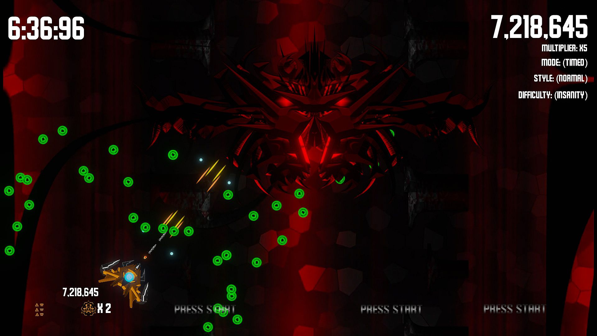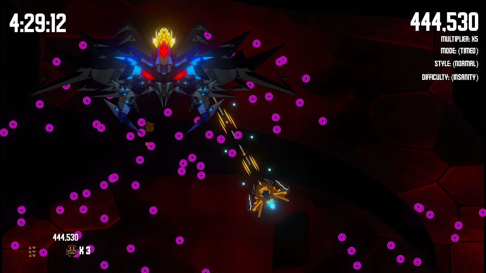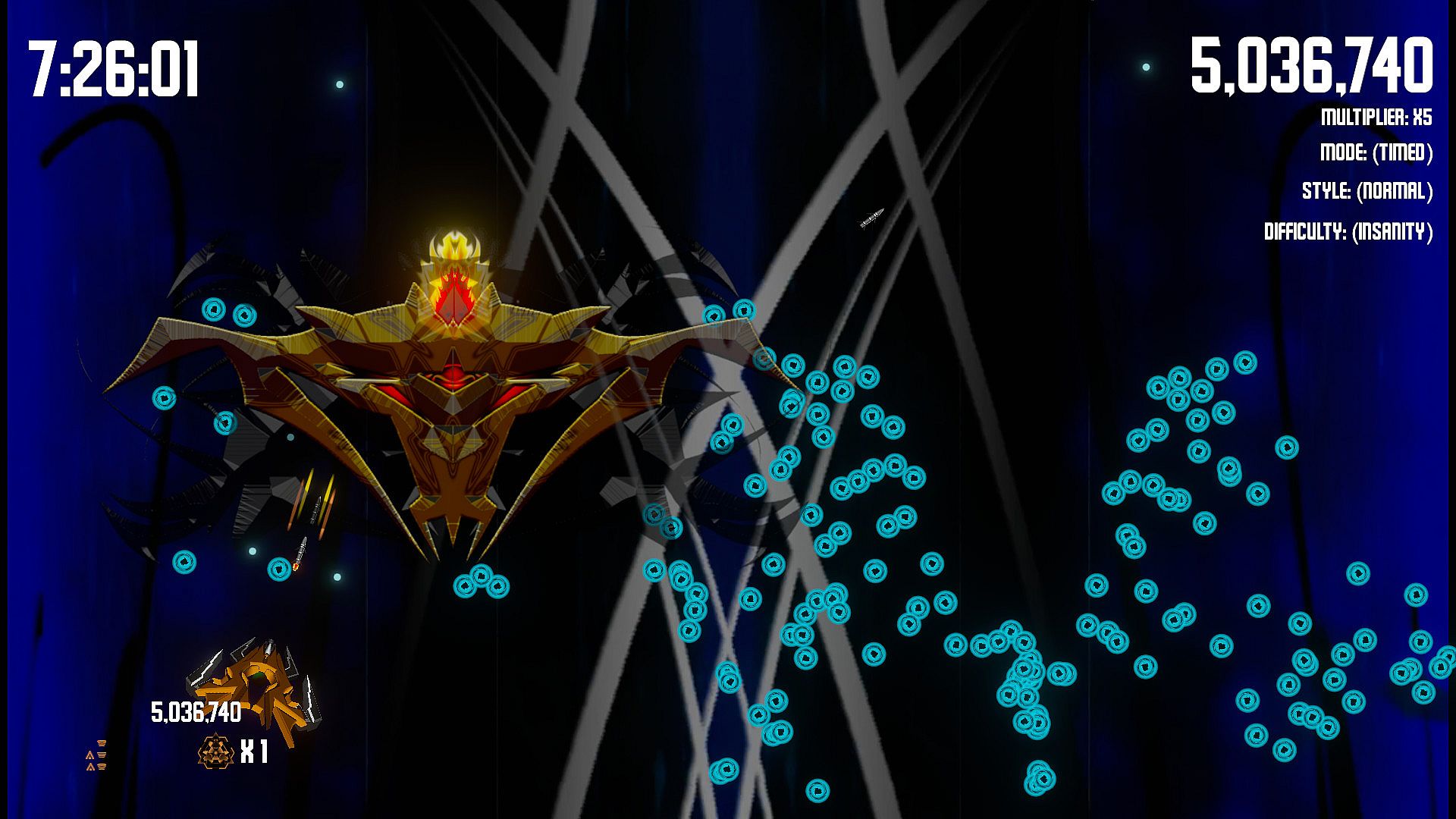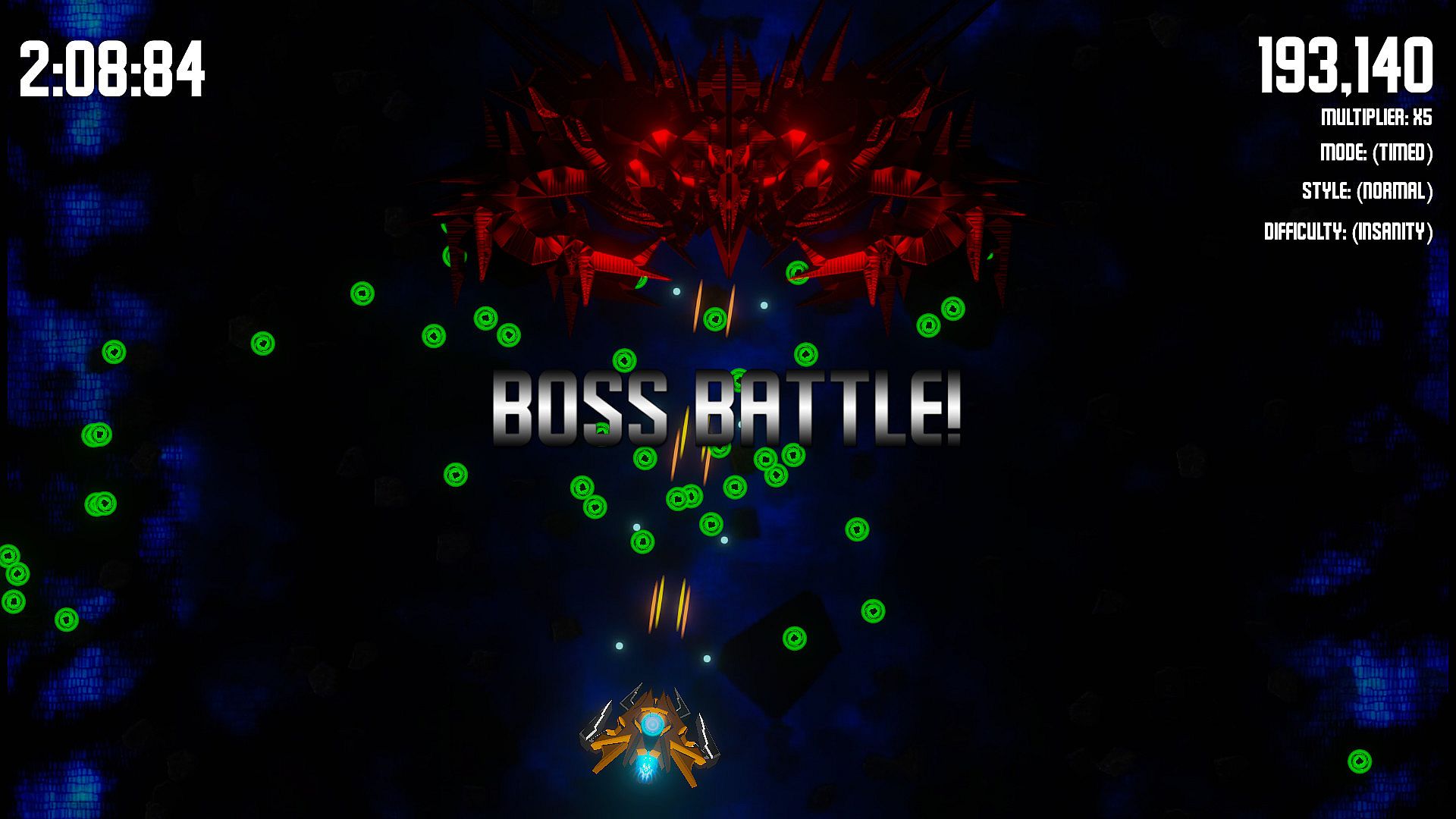 - Timed - A timed mode for speed runners. (Game is over if timer reaches 0). Gain time by killing enemies, bosses & collecting time power ups. (Ship death causes drastic time reduction but lives are infinite unless one life mode is active)