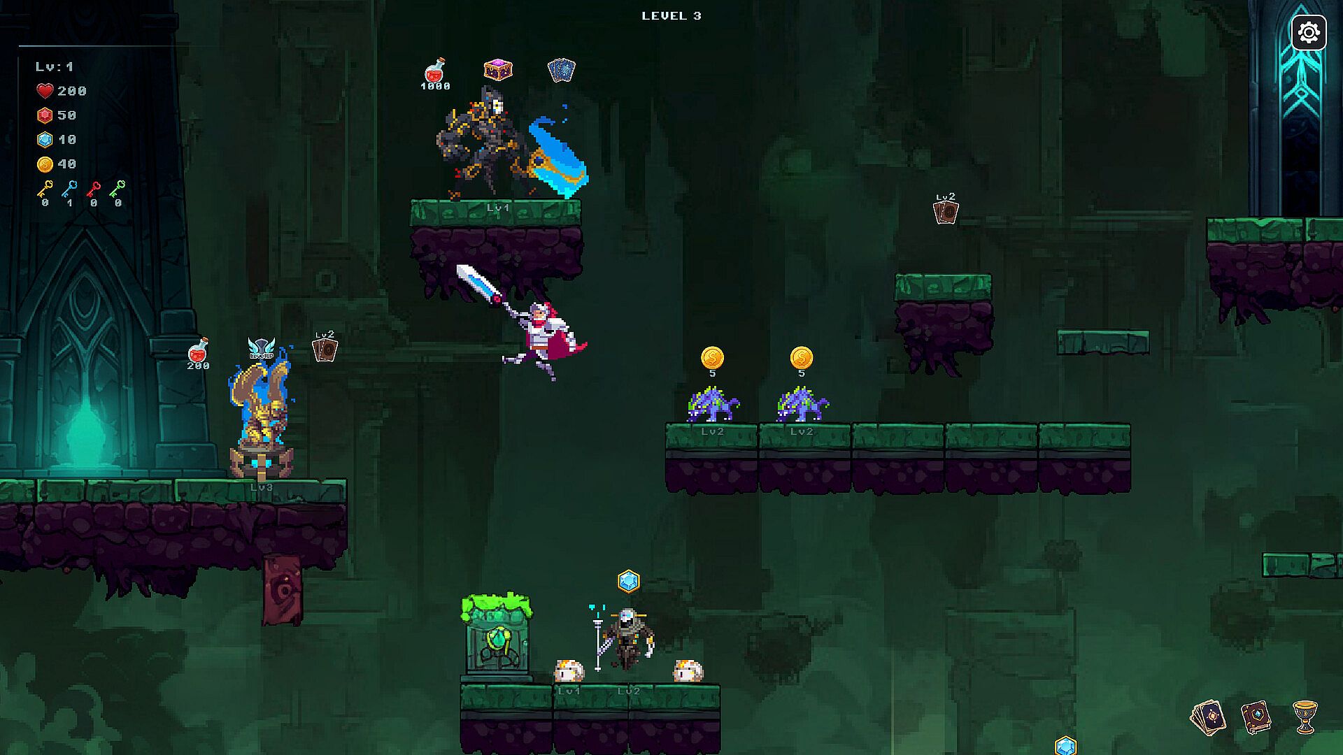 Side-scrolling Card Magic Tower,a roguelike "Magic Tower" single-player game that blends "platform jumping" and "card battles"!