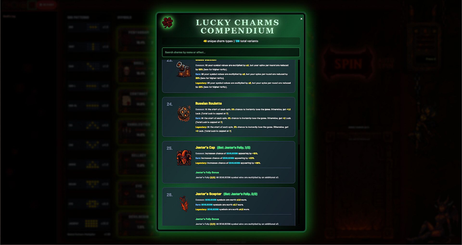 High-Risk Charms - Russian Roulette offers death or glory, while Glass Cannon trades safety for massive power