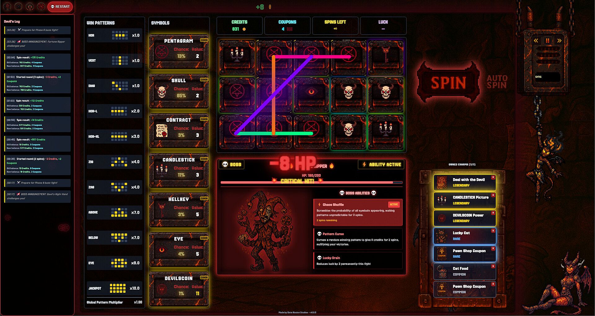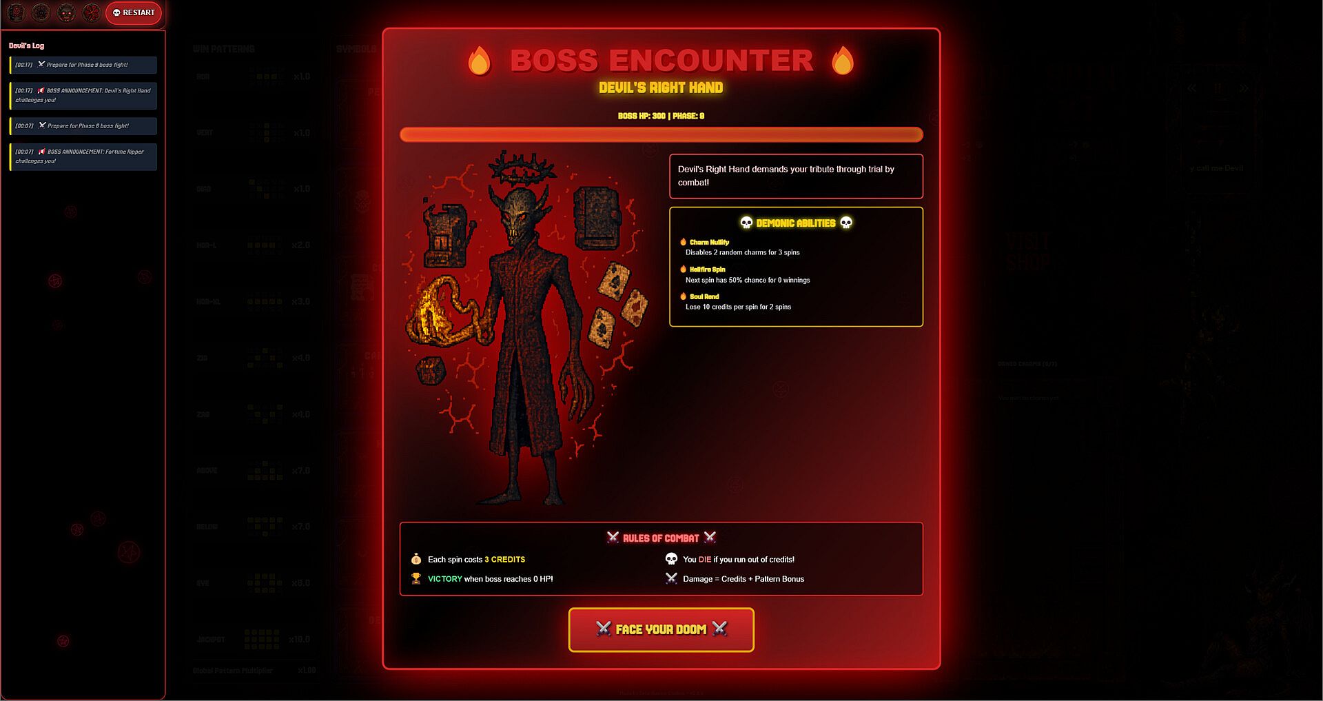 Each boss fight is a strategic battle where your slot machine skills directly translate to combat damage. Win big to deal massive damage, but beware—these demons have abilities that can turn your victories against you!