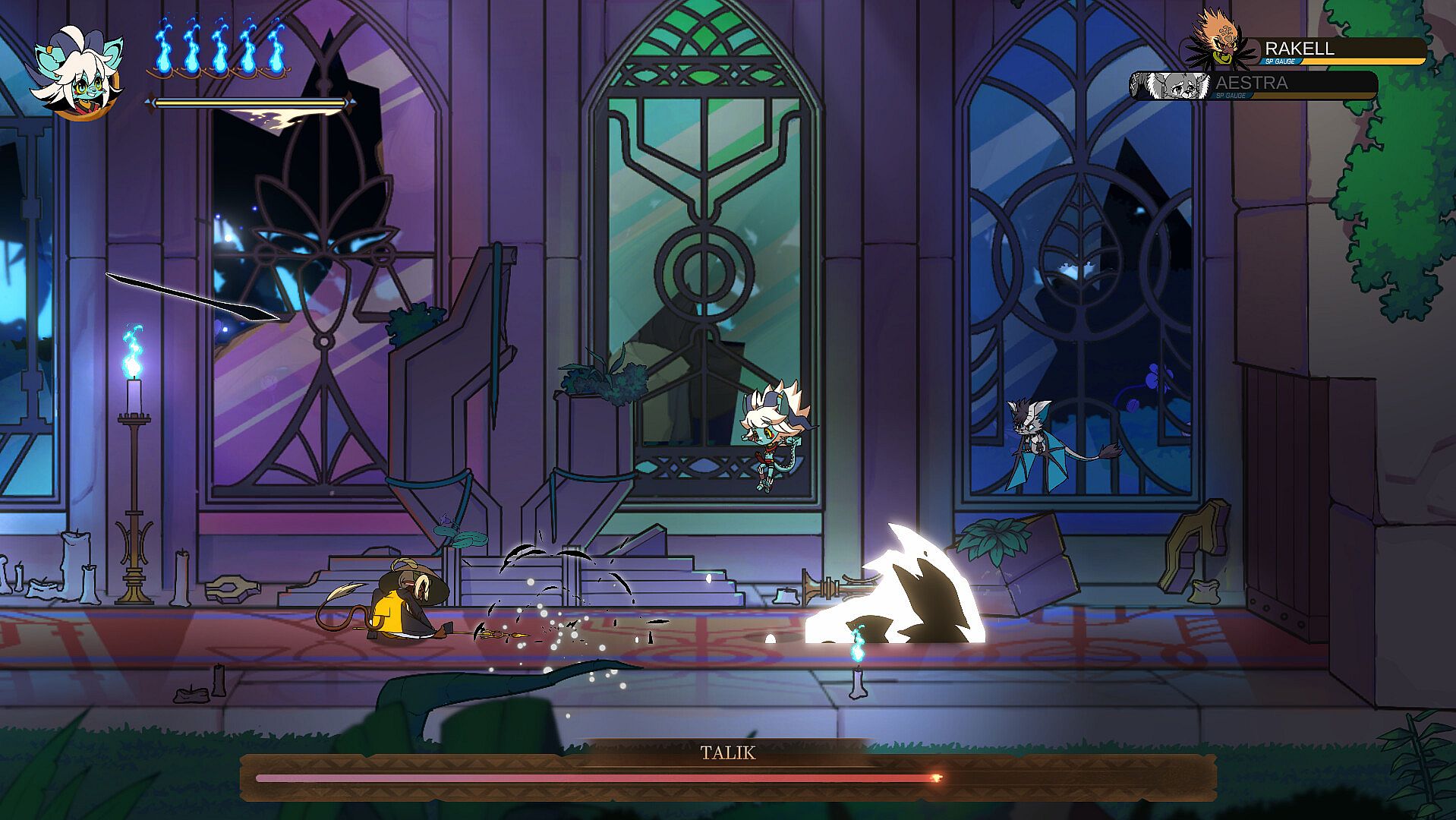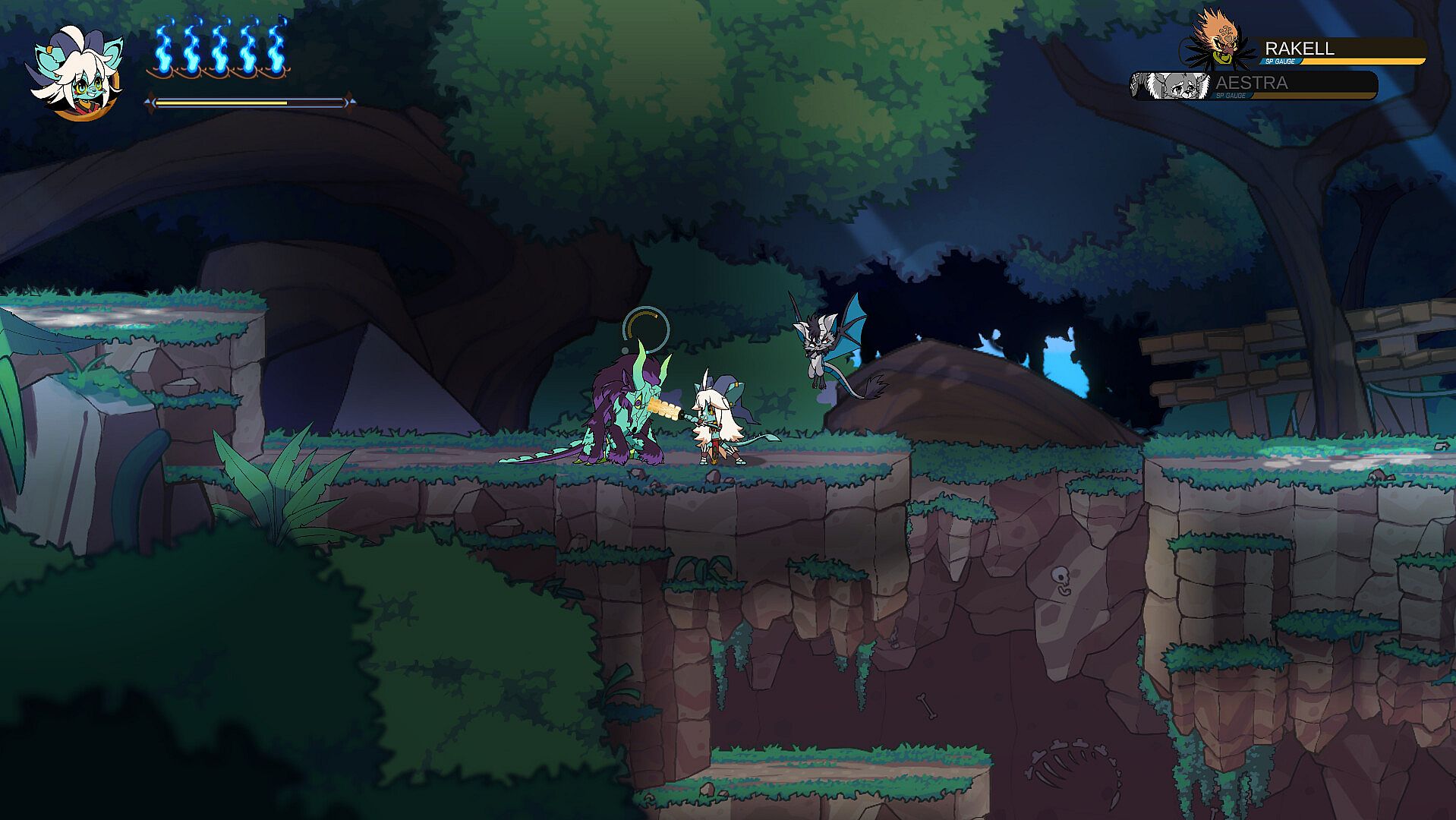 One of our most exciting additions, that I think sets us apart from many other metroidvanias, is our focus on the recruitment of party members, which help in various ways in combat. These allies aren't simply just combat tools. They each have a deep connection with the lore of the world and the narrative of Dew's journey. Sometimes they will simply join you as you progress through the world. Other times, you will need to actively perform specific quests in order to gain their trust. Each of these potential friends have their own stories to tell, and their own conflicts that need resolution. Every single ally provides something unique in combat, and attempting to befriend them all will be more than beneficial to your cause.