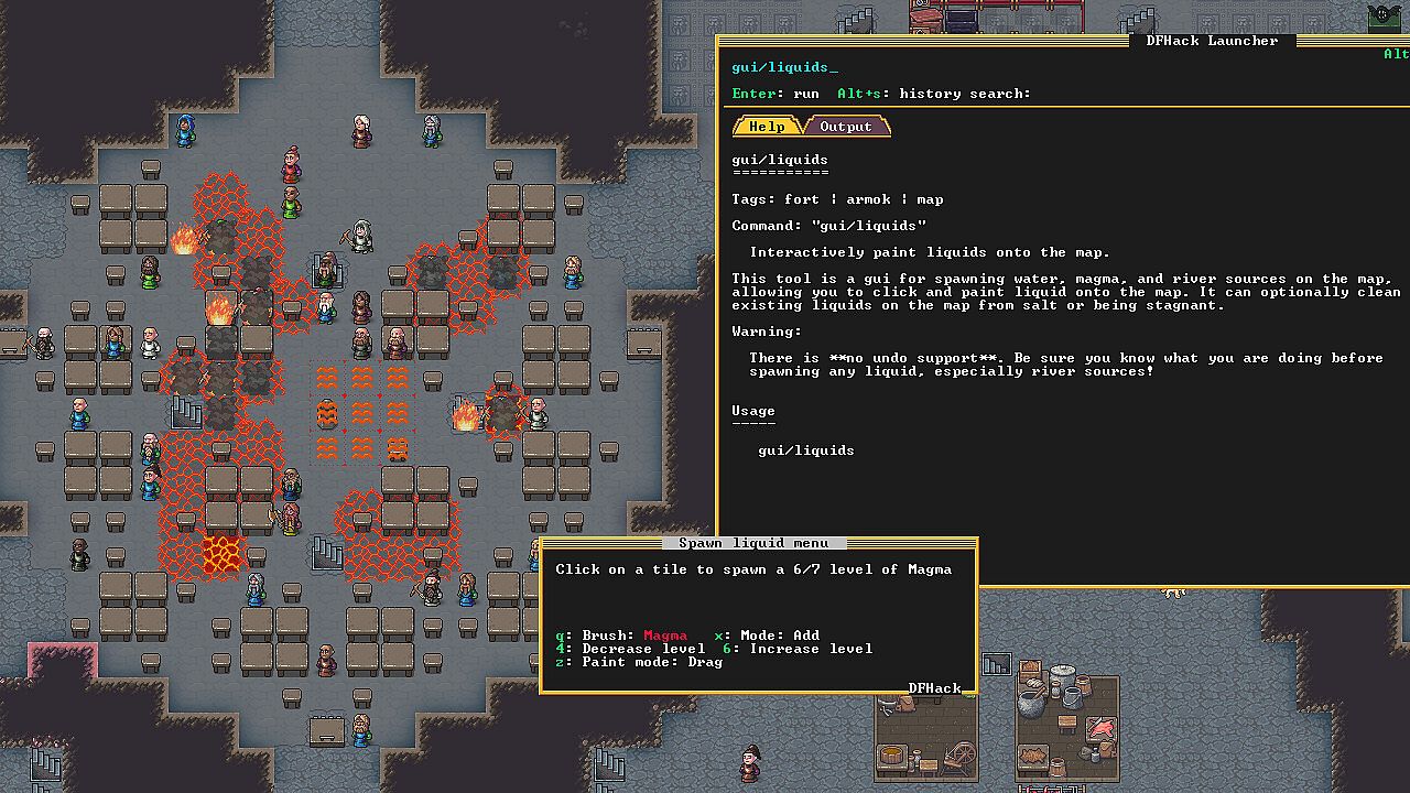 DFHack is an add-on for Dwarf Fortress (search for it here on Steam!) that enables mods and tools to significantly extend the game. The default DFHack distribution contains a wide variety of these tools, including bugfixes, interface improvements, automation agents, design blueprints, modding building blocks, and more. Third-party tools (e.g. mods downloaded from Dwarf Fortress Steam Workshop or the forums) can also seamlessly integrate with the DFHack framework and extend the game far beyond what can be done by just modding the raws.