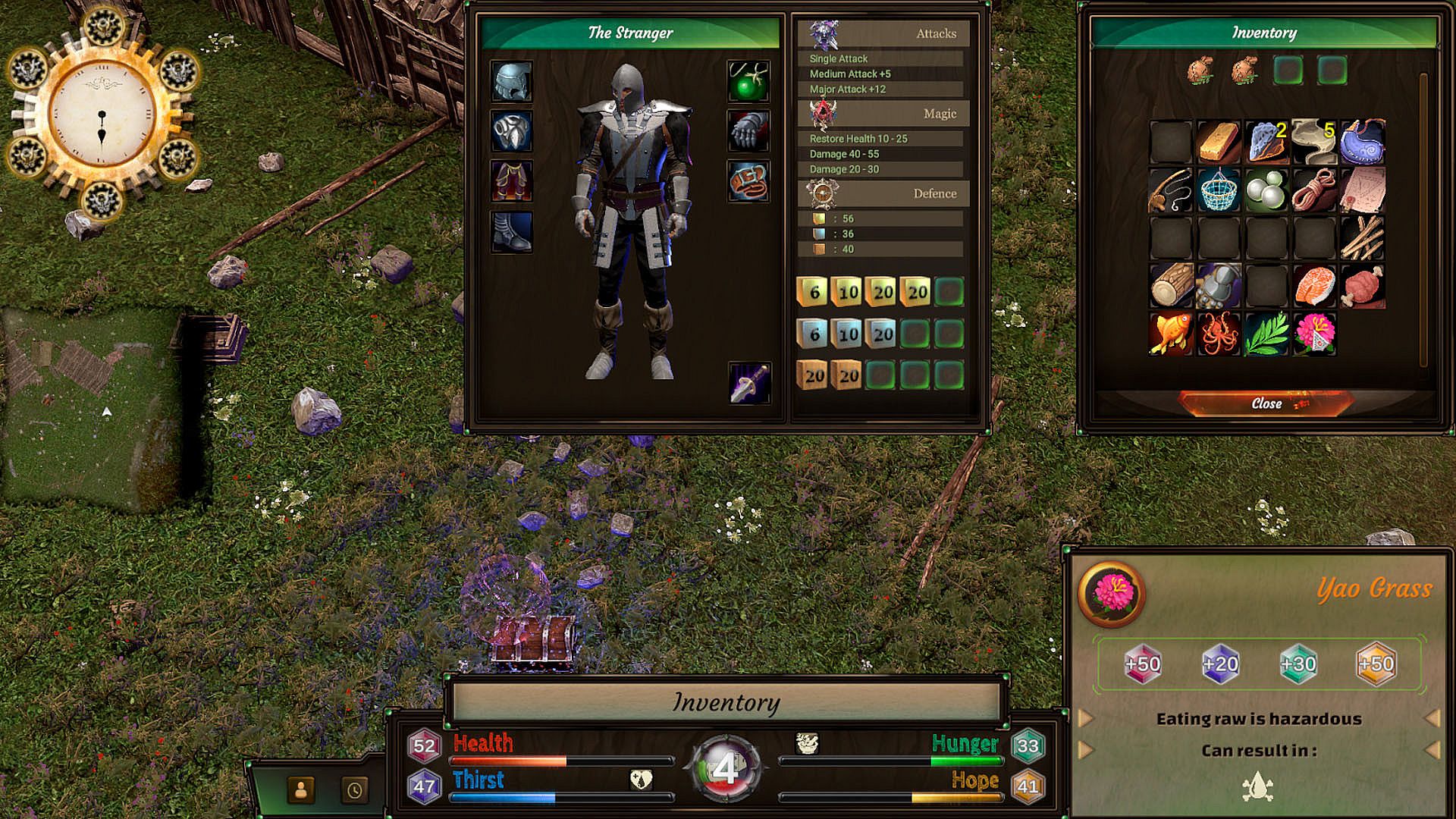 Forage, mine, fish, cook—but also fight. Craft equipment to gain unique Power Dice (wood/silver/gold), swaying your fate in critical moments.