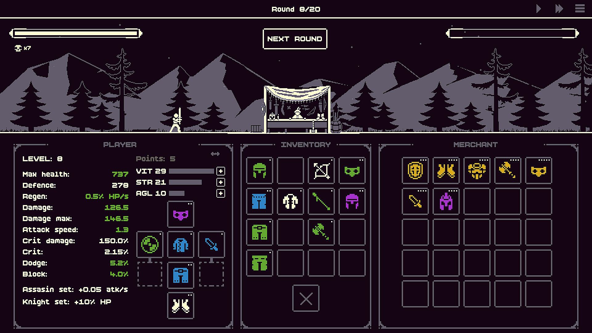 Roll the dice, level up your hero, search for powerful builds and strong synergies, and pick weapons that fit your playstyle. It might be a heavy, powerful spear or a light, fast dagger. You’ll have a wide choice of items. Every fight brings new enemies, and each battle is a new challenge — so it’s always smart to keep a spare set of gear in your inventory.
