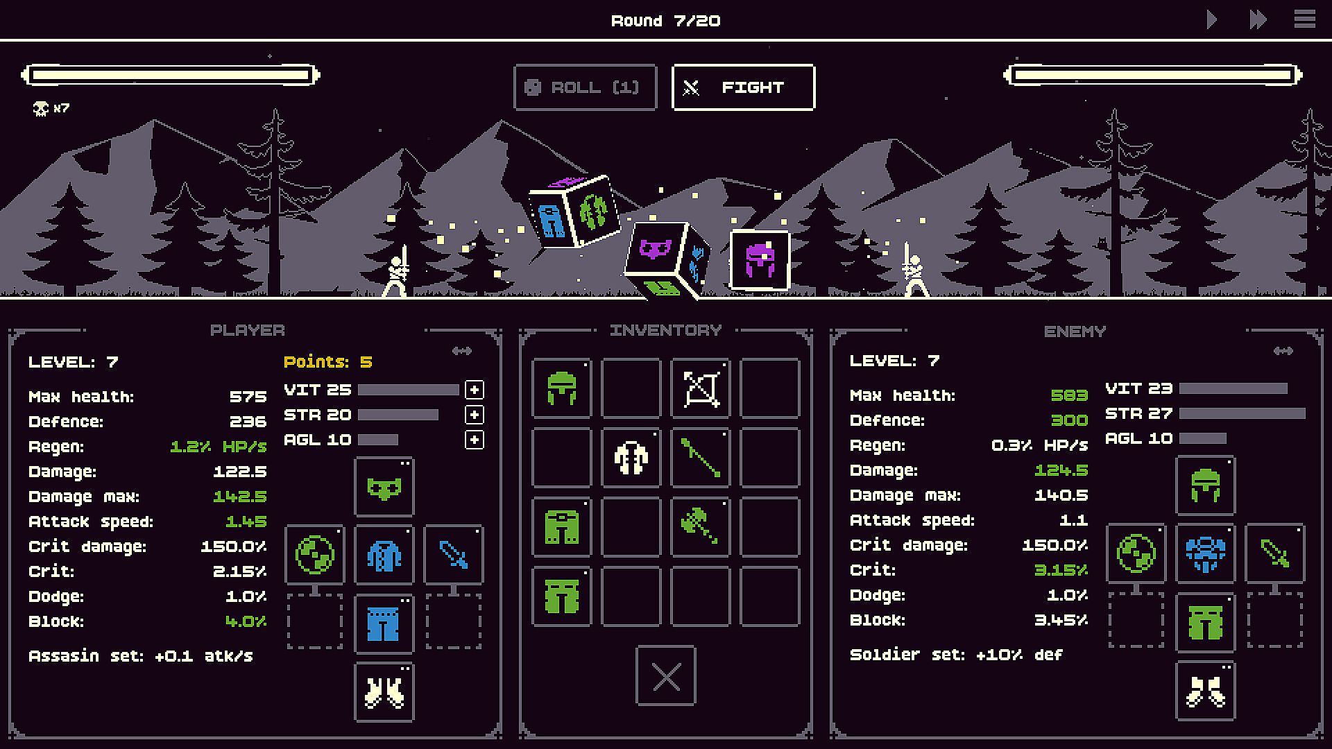 Test yourself in automatic battles. Your goal is victory. Your task is to choose the best equipment. Your tool is the dice.