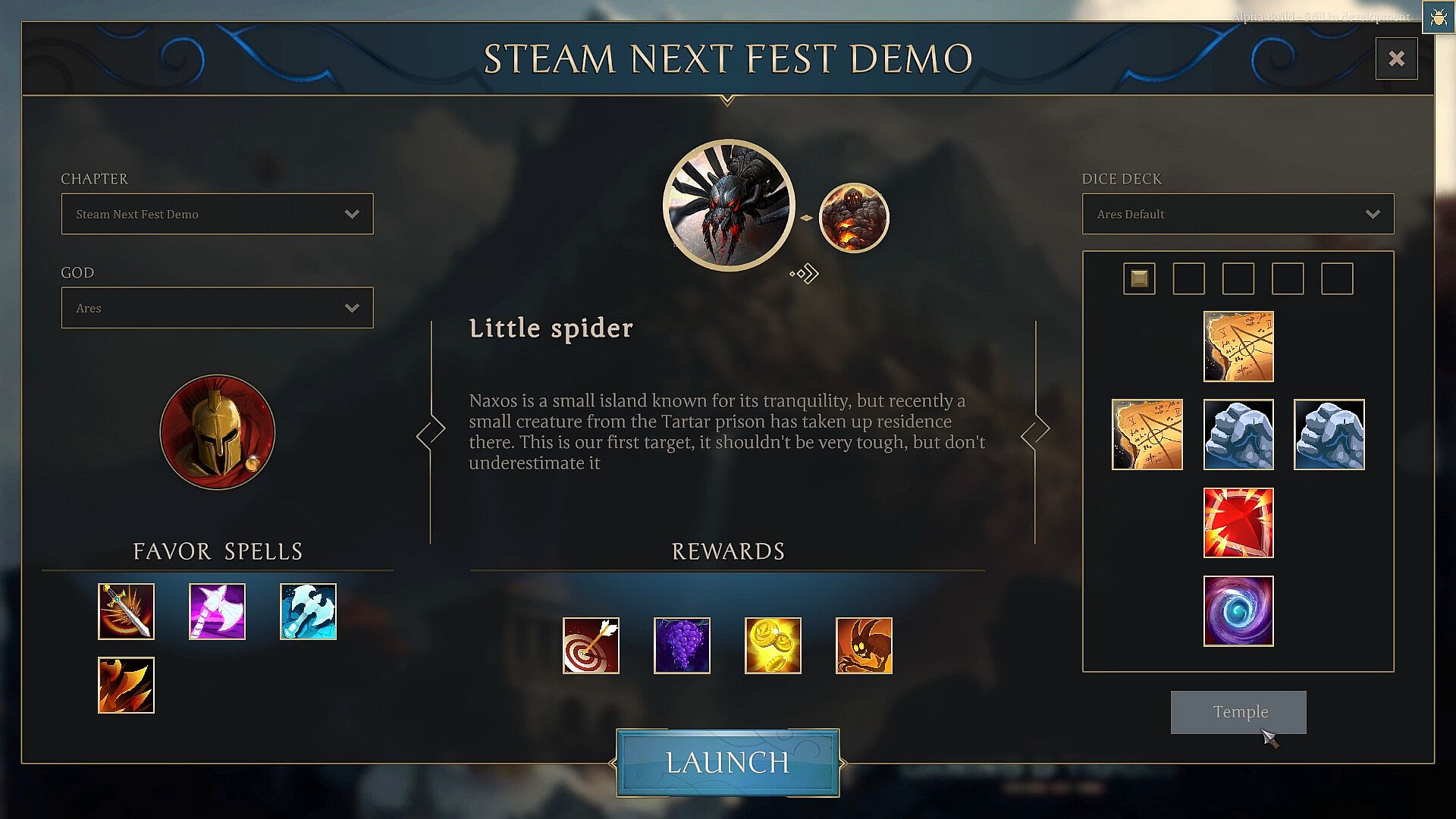 The Temple is the place where you can customize your dice decks. Take your time to read the descriptions of the many faces at your disposal, and distribute them wisely among your dice to create synergies and really great combo.